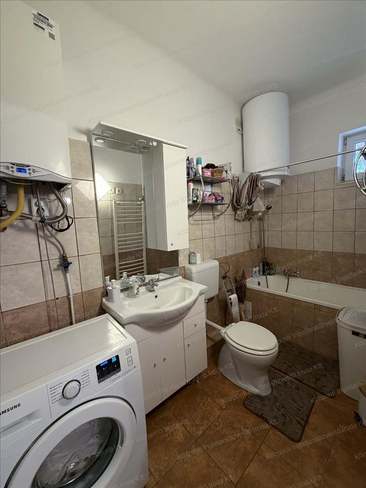 A 387 m2 -es telken elhelyezkedő 69 m2 alapterületű 1 szintes, tégla falazatú napfényes épületben, 2 külön nyíló szoba, előtér, konyha-étkező, ablakos fürdőszoba WC-vel lett kialakítva. Az otthon melegéről cirkó gázkazán gondoskodik radiátoros hőleadással, a háztartási meleg vizet villanybojler biztosítja. Kiépítésre került a hűtő-fűtő klímarendszer, így a megfelelő hőmérséklet klímával is szabályozható. a fürdőszobában kád ad lehetőséget ad a lazulásra, felfrissülésre. Az egyik szoba szőnyeggel, a többi helyiség járólappal burkolt.