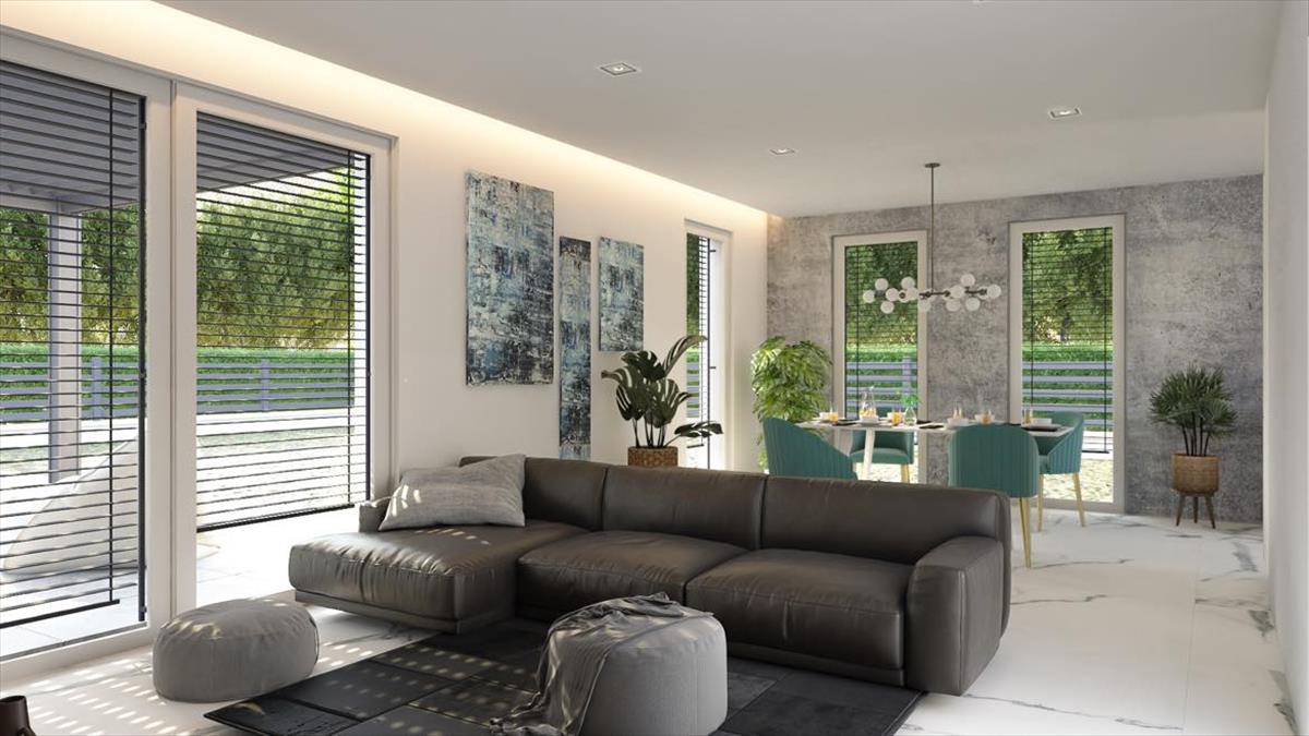 Ez az ingatlan, Szabina”! Bruttó 128 m2 beépített terület, Nettó 108 m2 hasznos alapterület. Nappali + 4 hálószoba, nagy üvegfelületek, klasszikus formavilág, többféle külső design lehetőség.