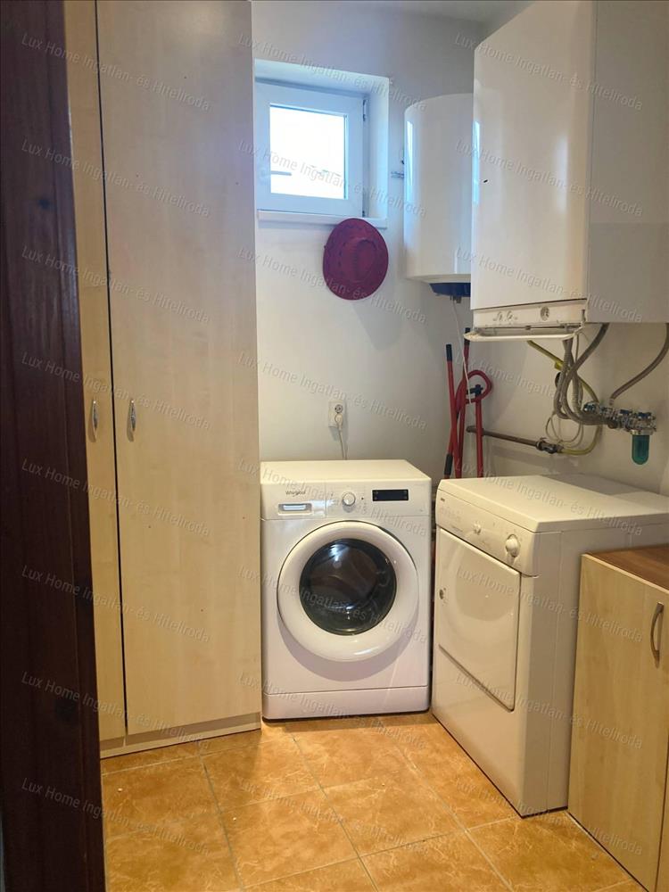 A víz melegítéséről és a ház melegéről kombi gázkazán gondoskodik, valamint a radiátorok a nappaliban lévő fatüzelésű kandallóval is fűthetők.