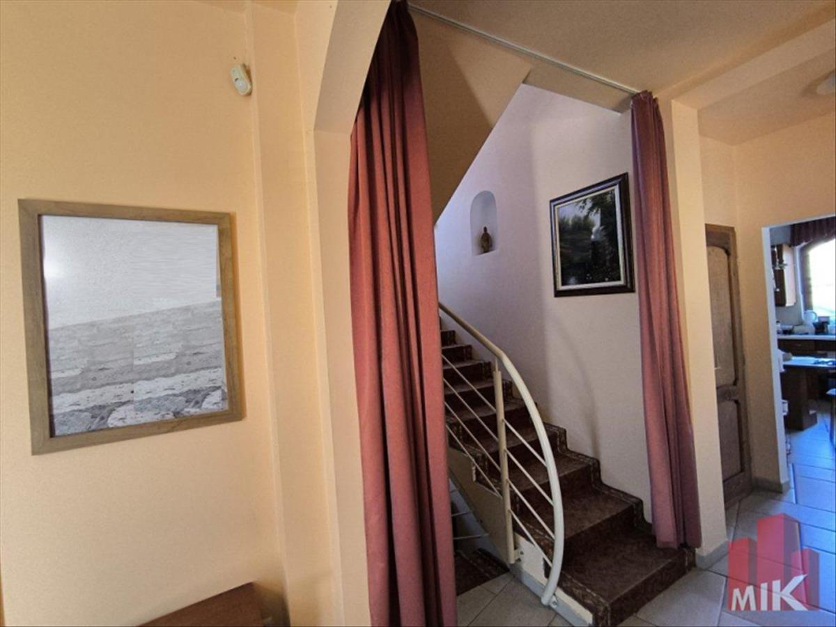 A ház közepén lévő lépcső visz fel az emeletre és visz le a pinceszintre.