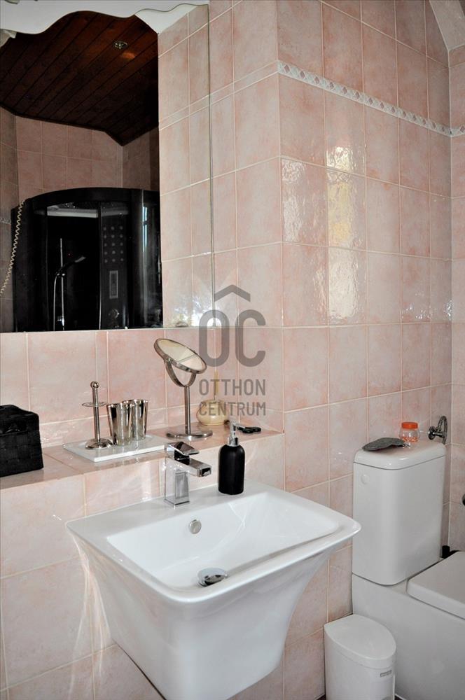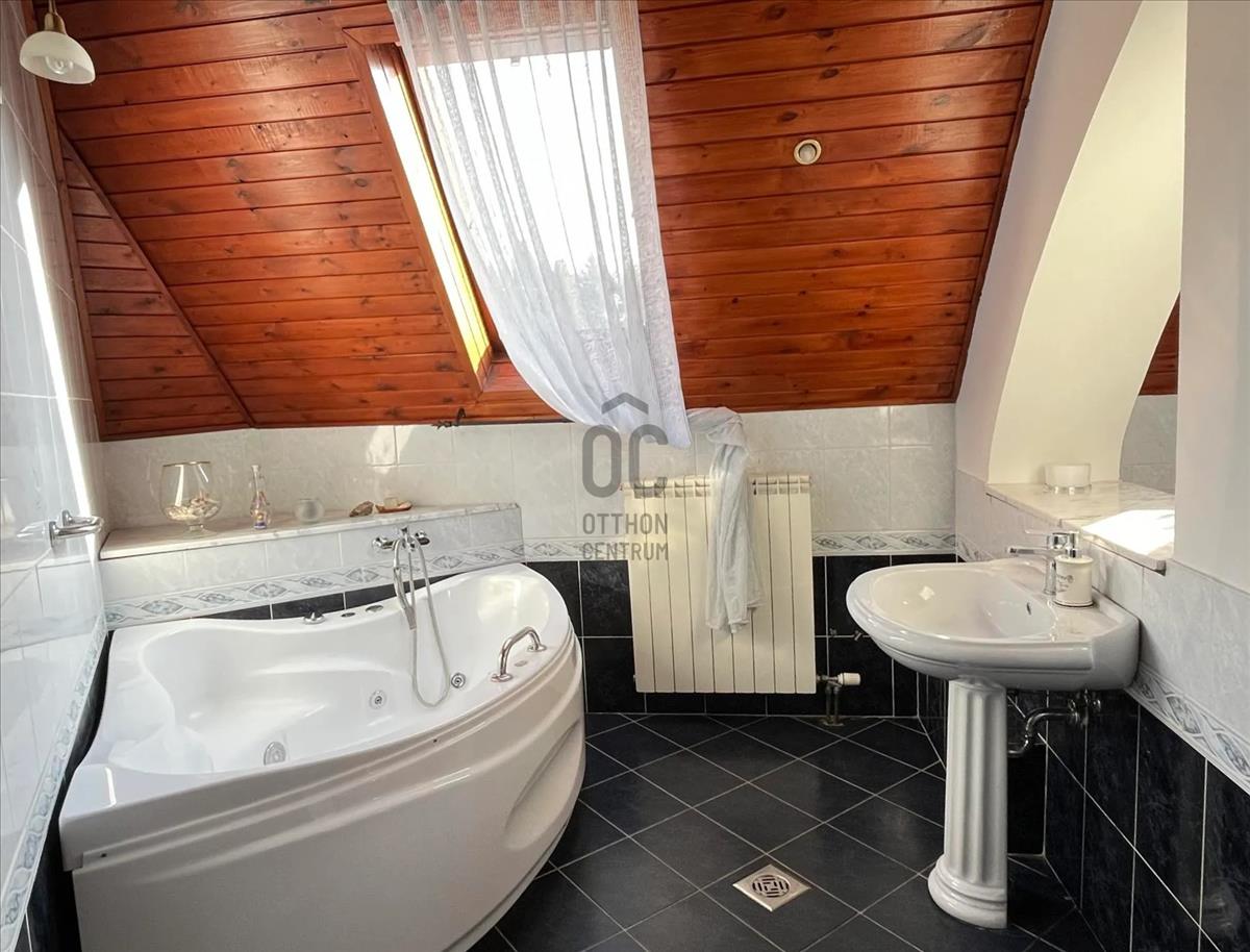 Eladó Telkiben, csendes mellékutcában, DNy-i fekvésű, nettó 300 nm (csak lakóterület) bruttó 410 nm (garázzsal, terasszal, plusz egyéb) kitűnő állapotú, luxus családi ház. Az egyedi belső tér elosztású ingatlan jellemzői az igényes kivitelezés, kiváló; - minőségi anyagok, tágas világos terek. a földszinten nappali, étkező-konyha, nagyméretű szoba, fürdőszoba, WC-kézmosó, kamra, közlekedő, előszoba és hatalmas terasz található. a nappaliban kandalló, a konyha közelében kéménybe kötött grillező lett kialakítva. a Tetőtérben közlekedő, kettő hálószoba, kettő fürdőszoba, galéria és loggia van. a szuterén szinten szobákat, gardróbot, háztartási helyiséget, fitnesz helyiséget (szaunával, zuhannyal), WC-kézmosót, tárolót, egyéb helyiséget, közlekedőt, fürdőszobát (zuhany és pezsgőfürdő), és fedett teraszt találunk. a kertben medence van gépészettel kialakított, fűthető. Extraként említésre méltó a ház teljes szigetelése, automatizálás, redőny, szúnyogháló, naproló, nappaliban kandalló, különleges burkolatok és szaniterek, egyedi bútorok és konyhai gépek, Viessmann kazán, hőszivattyú, riasztórendszer, biztonsági rendszerek és elemek, kaputelefon. a gondozott, parkosított kertben válogatott örökzöldek, lombhullatók, cserjék, virágok, sziklakert található. a kertben még kialakításra került egy méretes terasz pergolával (árnyékolóval). a garázs előtt nyitott, térkövezett beálló van, kettő autó parkolására alkalmas. Hitel.hu - Hasonlítsa össze a bankok lakáshitel ajánlatait