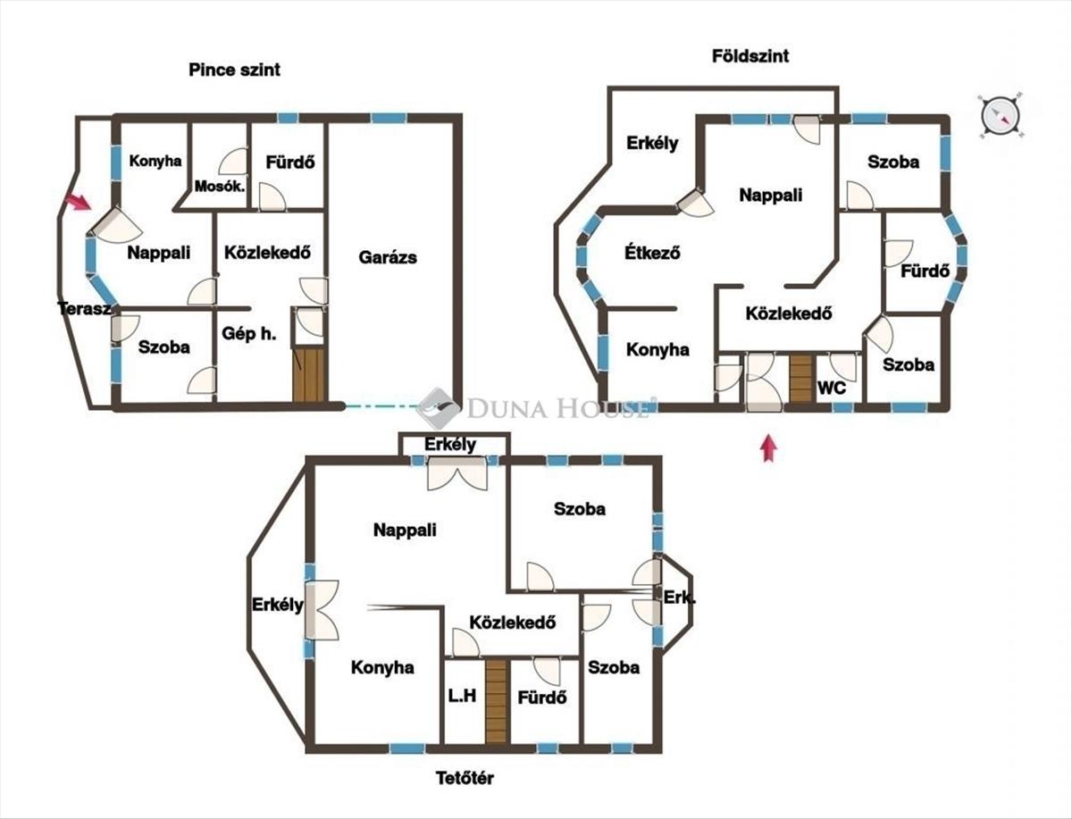 -3 külön szint, külön bejáratokkal