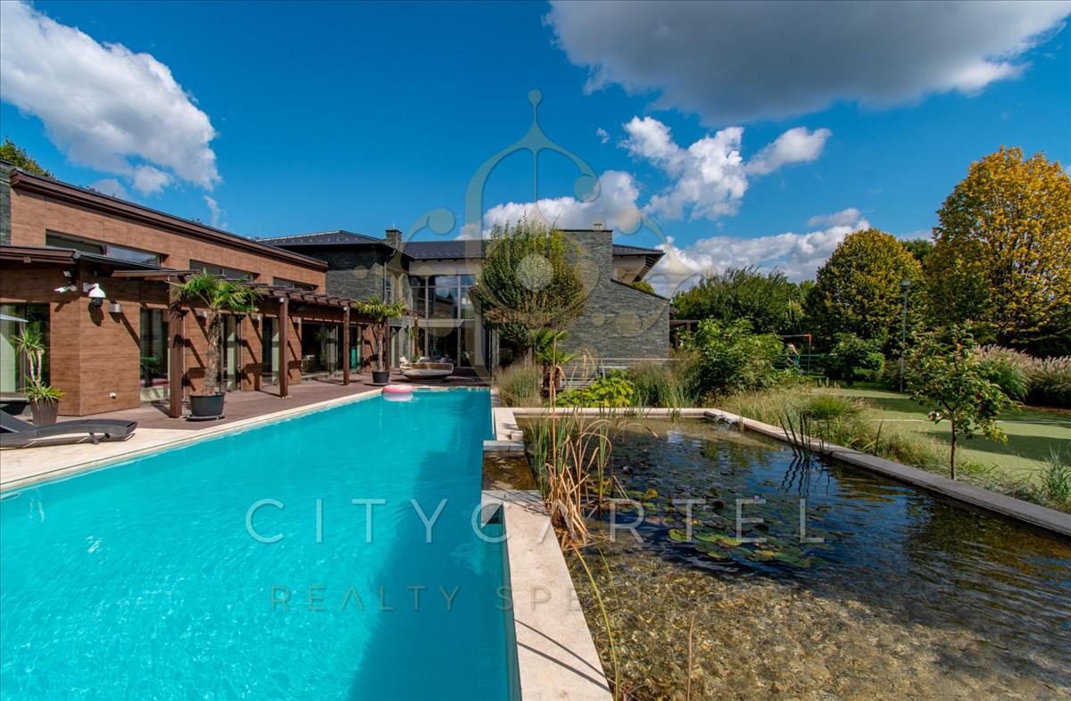 A 3. 655 Nm-es parkosított telken úszómedence, kerti tó, focipálya, kutyakennel, játszótér, fedett grillező, melléképület, nagyméretű teraszok, konyhakert, rózsakert található.