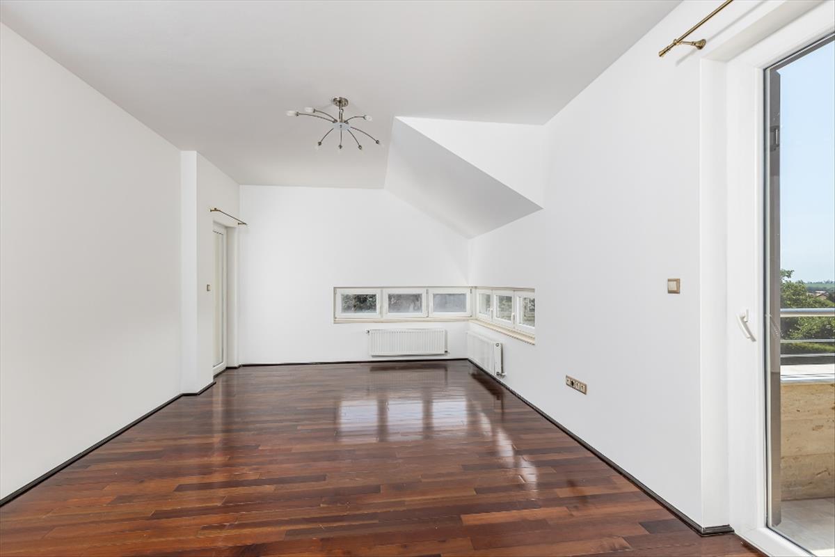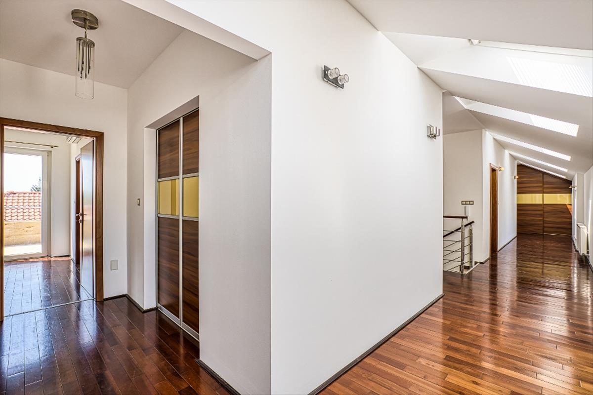 Emelet: négy nagy hálószoba gardróbokkal, két fürdőszoba, illetve két terasz (amiből az egyik 34 nm )