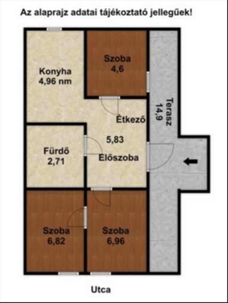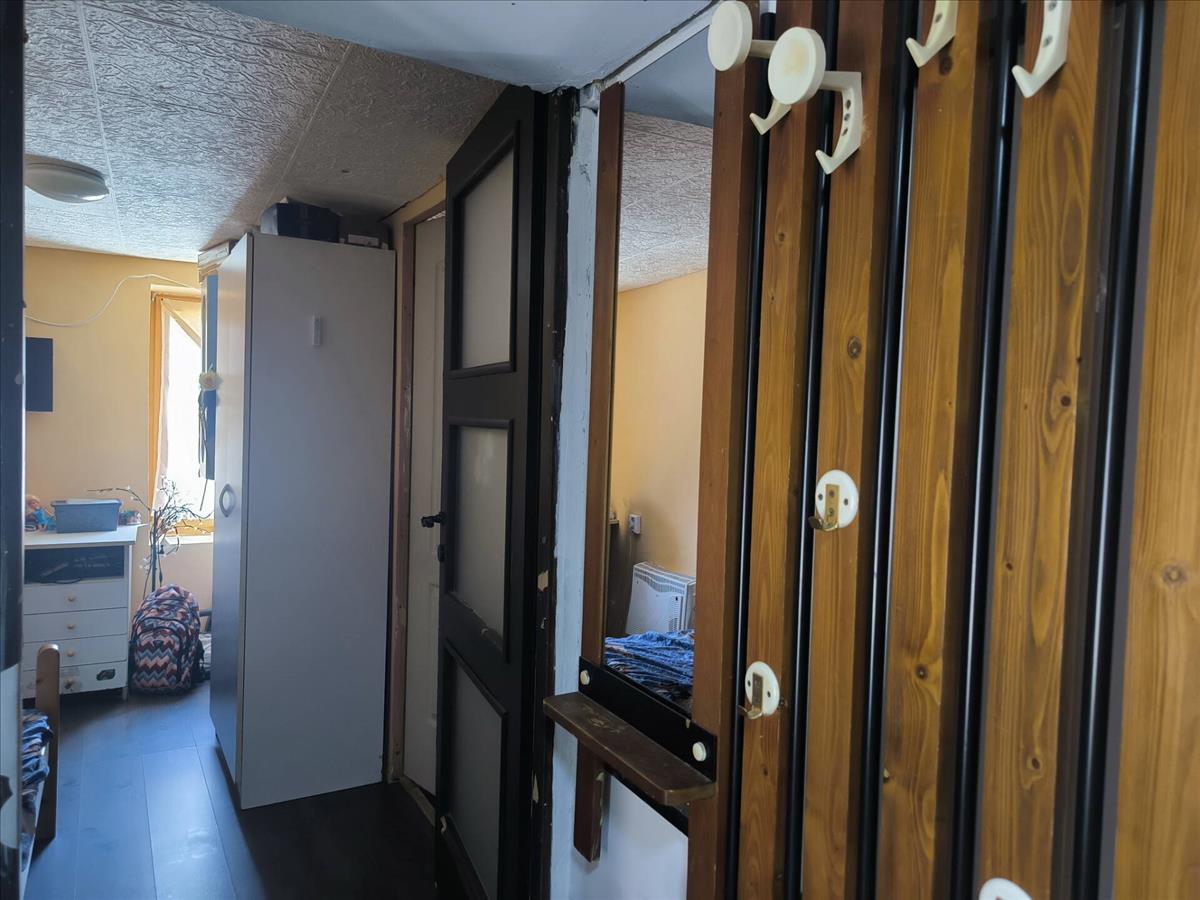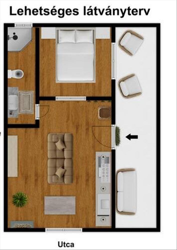 -3 fél szoba (laminált padló), de az utcafronti 2 szoba között csak gipszkarton fal szolgál a helyiségek elválasztására, így annak eltávolításával egy nagyobb helyiség nyerhető,