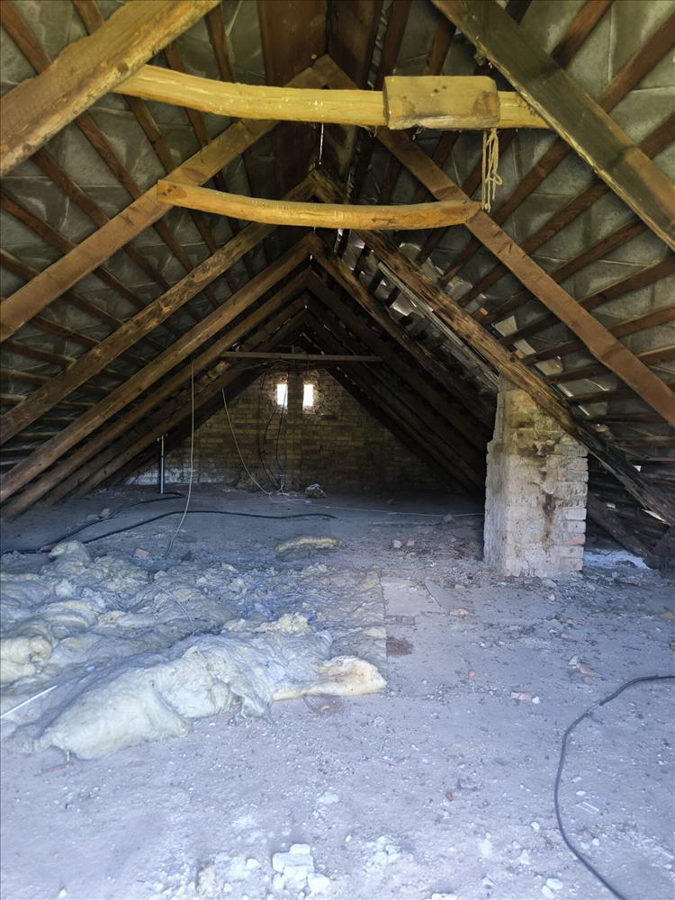 -az ingatlanon belül mennyezeti szigetelésként 10 cm vastag kőzetgyapot került felhelyezésre a gerendák közé,