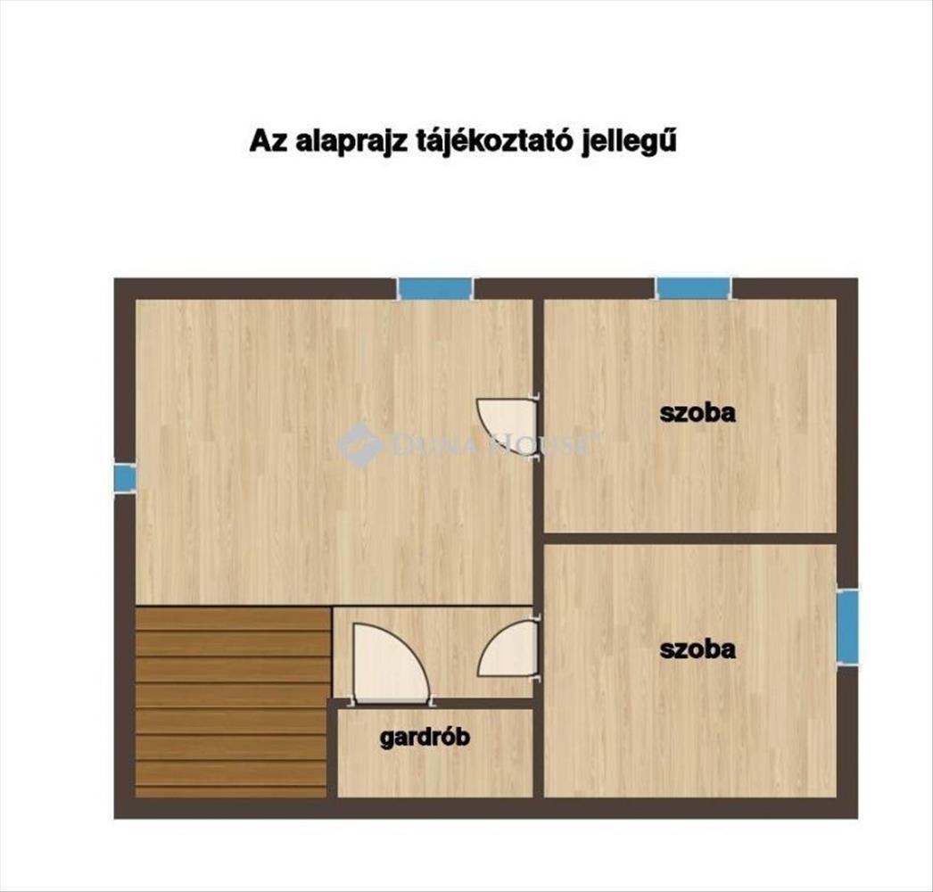 Tetőtér: előtér/irodasarok, 2 szoba, gardrób