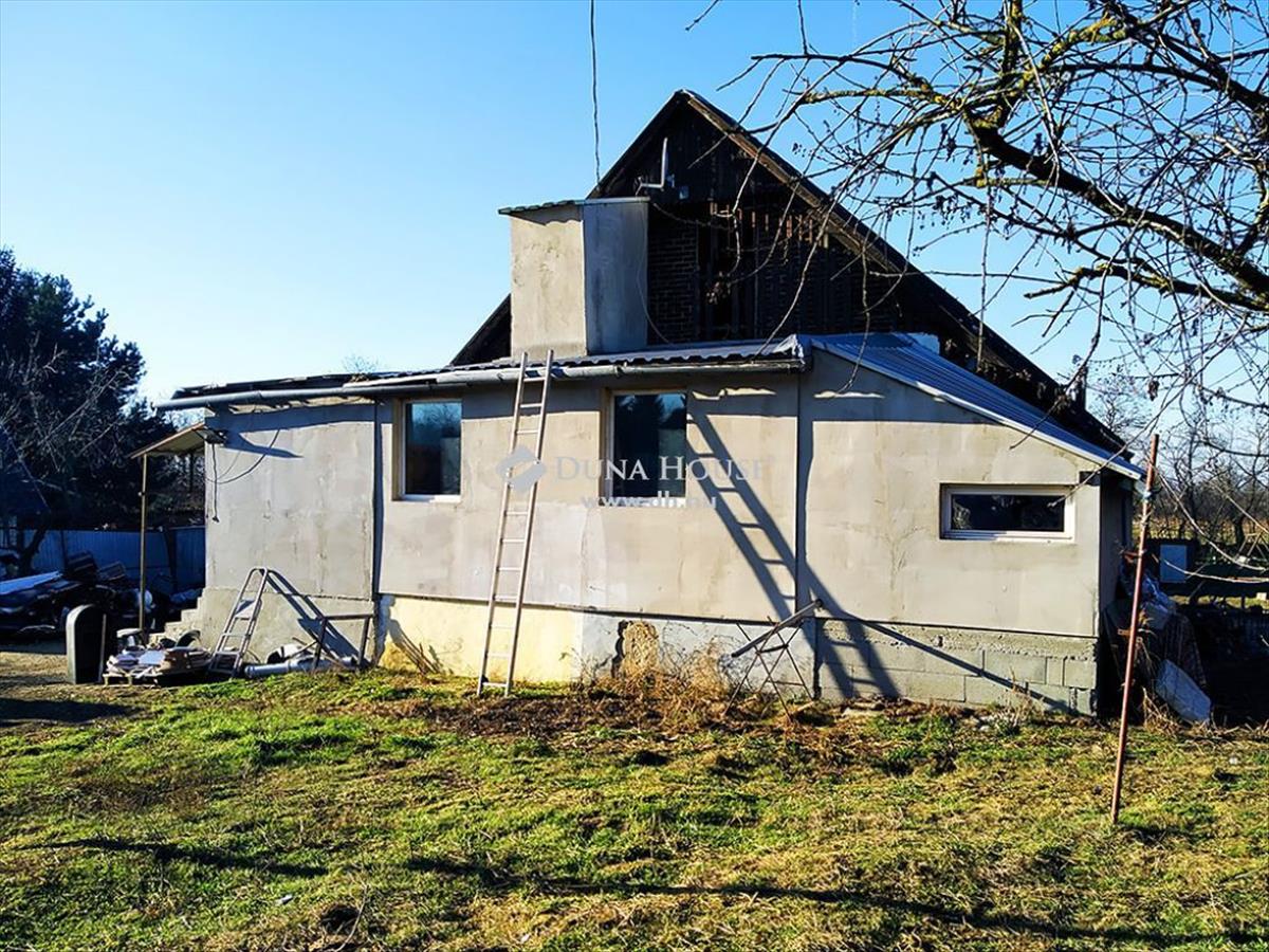 Az utcafront felüli ingatlan 4 éve épült, nappali, 3 szoba, konyha, fürdő, kamra, terasz, pince helyiségekből áll. a lakórész 86 m2 + 18 m2 terasz + 12 m2 pince tartozik hozzá. Az épület falazóanyaga tégla, 1 szoba készült könnyűszerkezetes elemből, a házat felülről lemeztető borítja, alatta üveggyapot szigeteléssel. a helyiségekben 2 rétegű fehér műanyag ablakok vannak, a burkolat járólap és linóleum, a fűtésről radiátoros vízteres kandalló gondoskodik, a nyári melegben pedig klíma teszi kellemessé a hőmérsékletet. Az épület északi oldalról 10 cm, a többi oldalról 5 cm szigeteléssel ellátott. a terasz fa szerkezetű, fedett borítással rendelkezik.