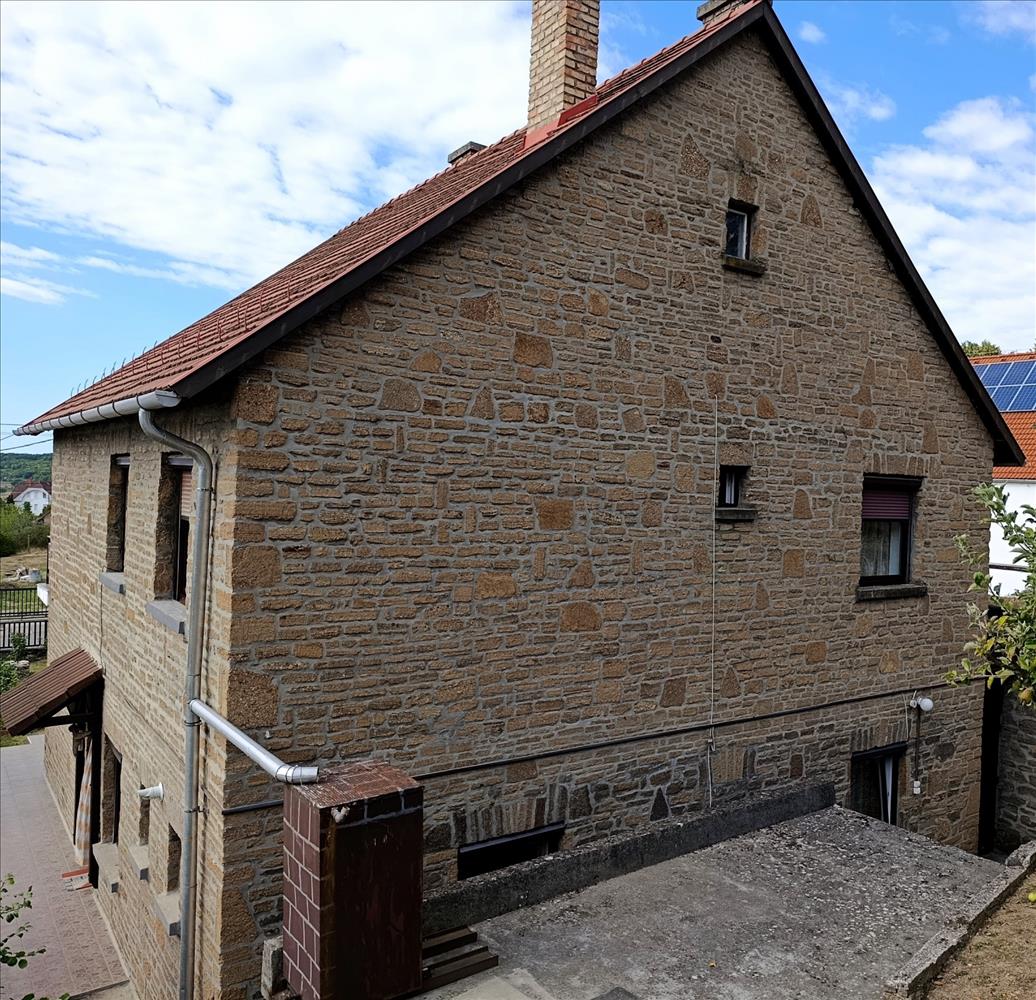 A ház tihanyi terméskőből épült, amely időállóságot és meghitt, természetes szépséget kölcsönöz neki.