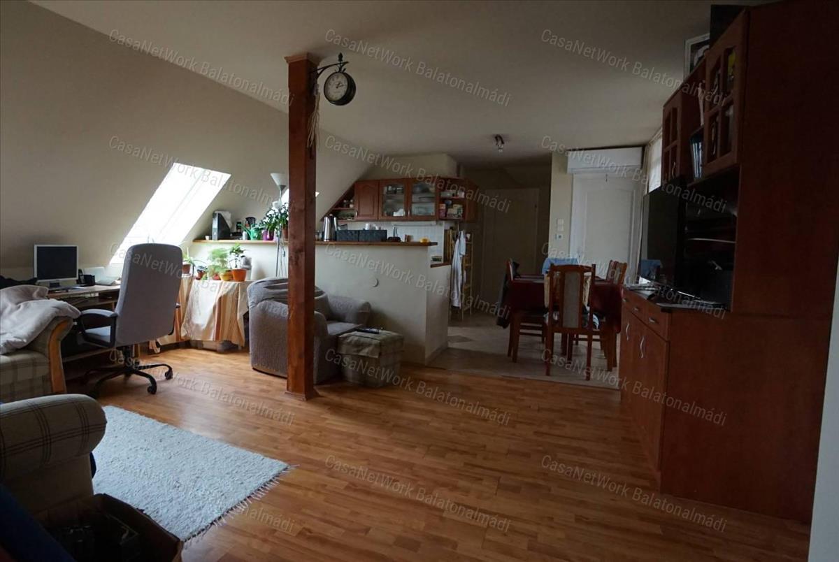 - az emelet: nagy amerikai konyhás nappali, négy szoba, egy fürdőszoba toalettel és vendég toalett; mindkét teraszról gyönyörű panoráma tárul elénk a Tihanyi Belső-tóra