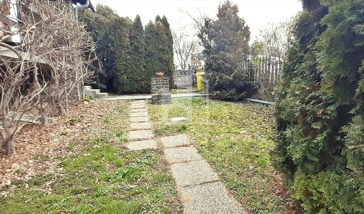 A 414 m2 nagyságú telket örökzöldek díszítik.
