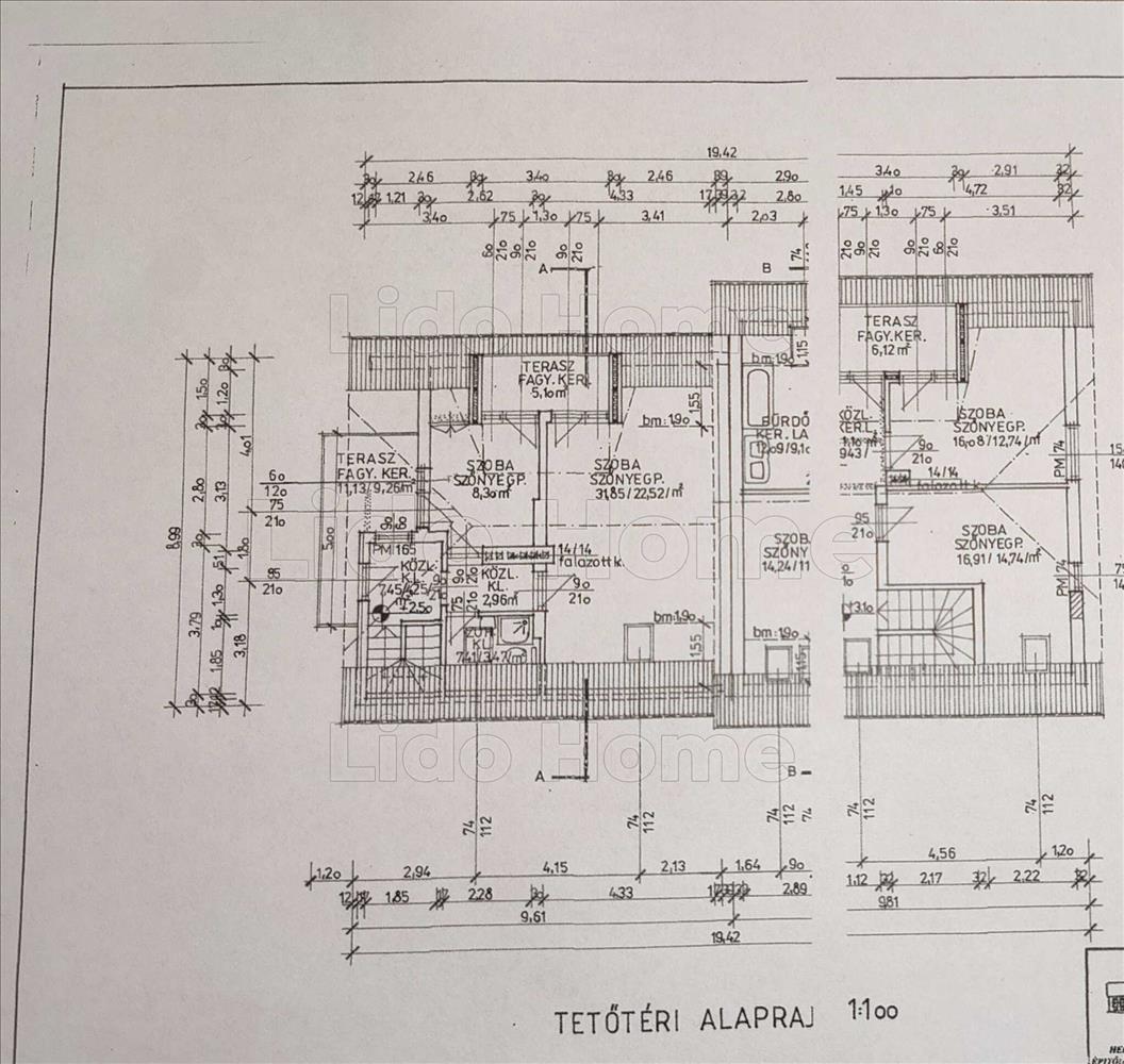 -Tetőtér: 3 hálószoba, zuhanyzós fürdőszoba, fedett és nyitott teraszok