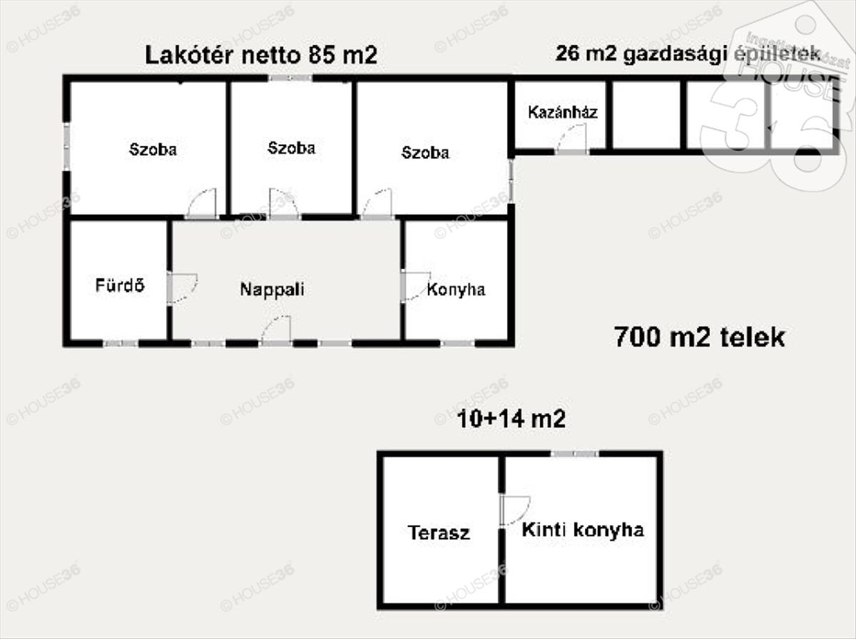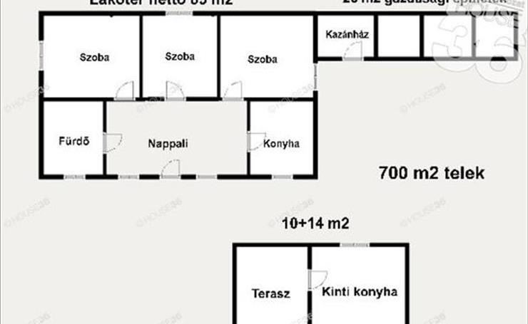 A telken van egy lakhatóvá tehető 14 m2-es kis konyha is, teljesen alápincézve, mely 10 m2 terasszal is rendelkezik.
