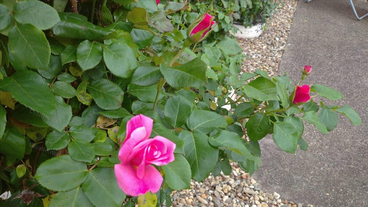 - telepített rózsafák díszítik a kertet
