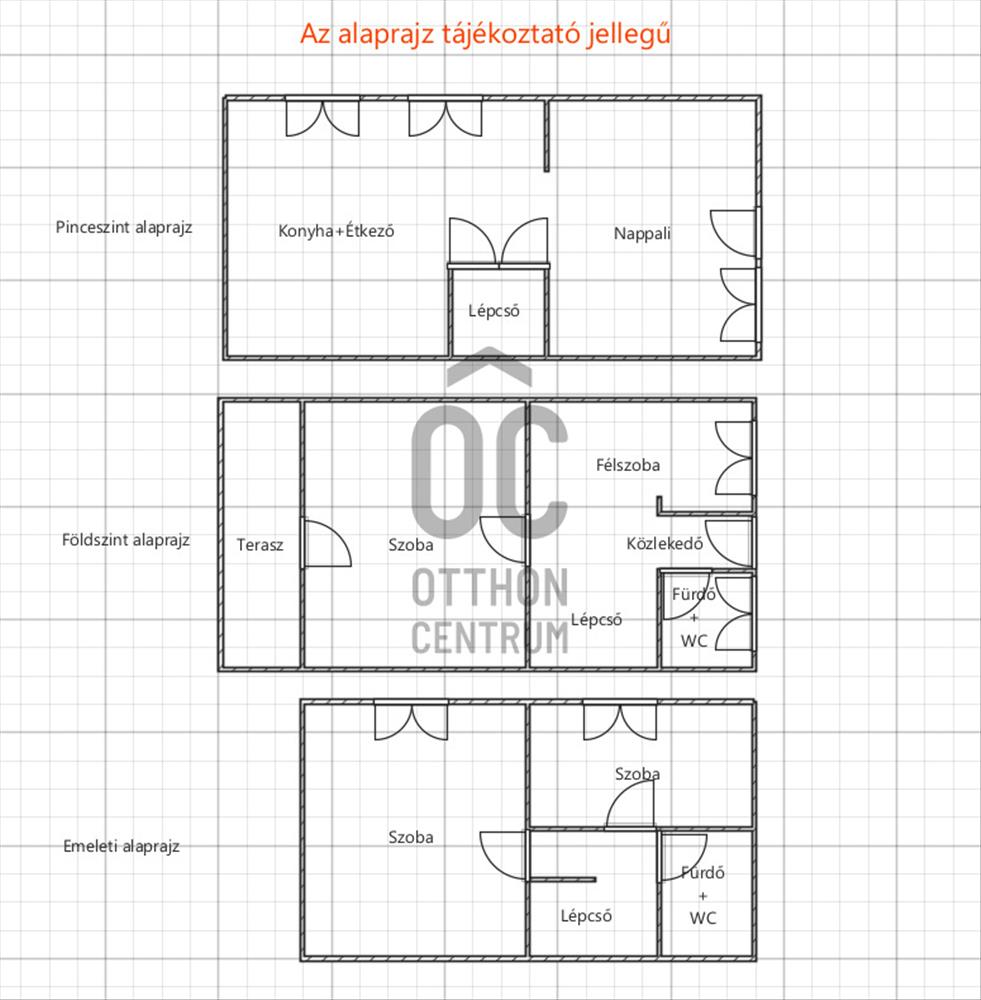 A ház pince + földszint + emelet tagolású, az emeleti rész részben tetőtérbe épített. a belső terek kényelmesek, jól alakítottak, összesen 5, 5 szoba áll rendelkezésre, köztük 3 nagyméretű, külön nyíló szoba, valamint 2 fürdőszoba, ami családoknak és turisztikai hasznosítás esetén is ideális.