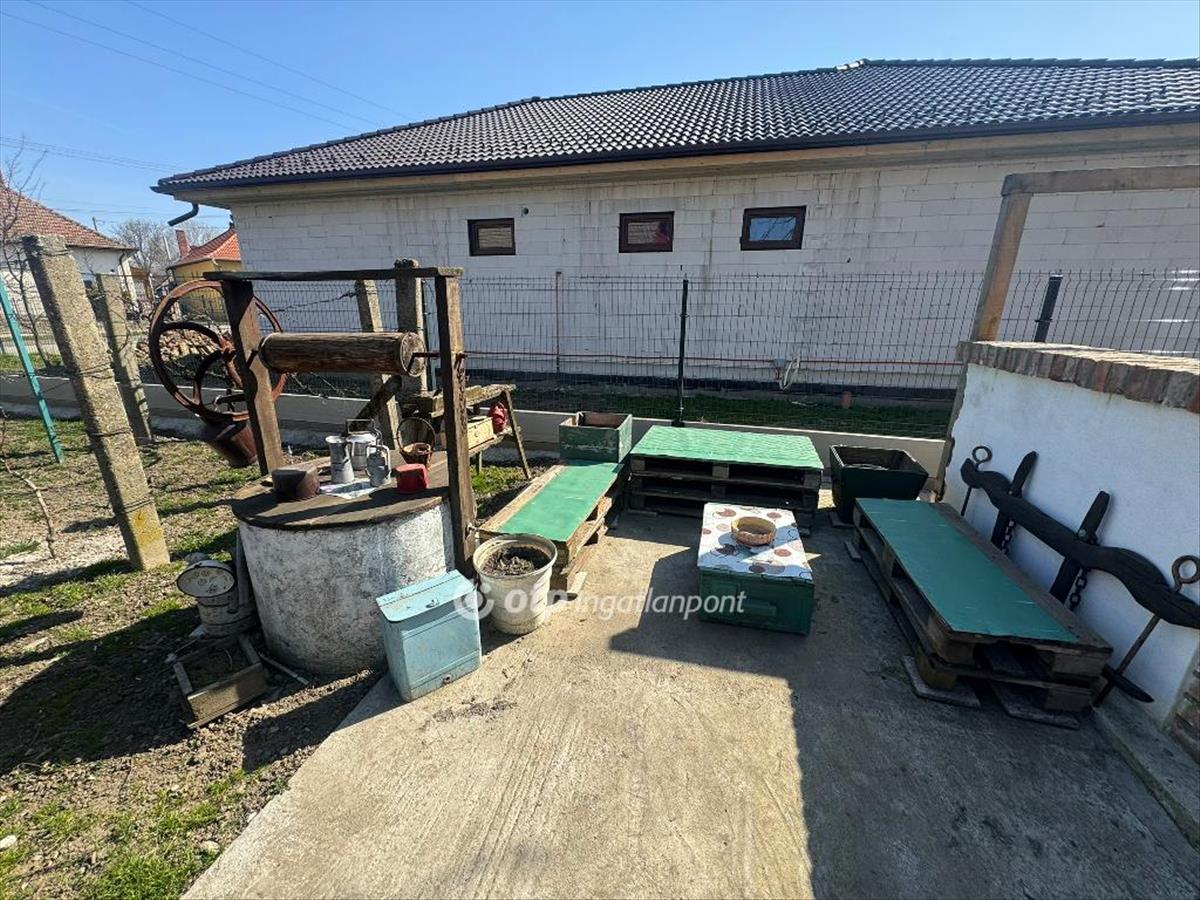 Udvara körbekerített, rendezett, rajta gyümölcsfák (5 szilva, 5 kajszi, 2 cseresznye, 5 alma, 2 eperfa, 1 dió, szőlő), melléképületek, fúrt kút (38 m), kerti csap.