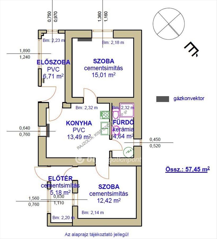 - Alapterület:57 m2