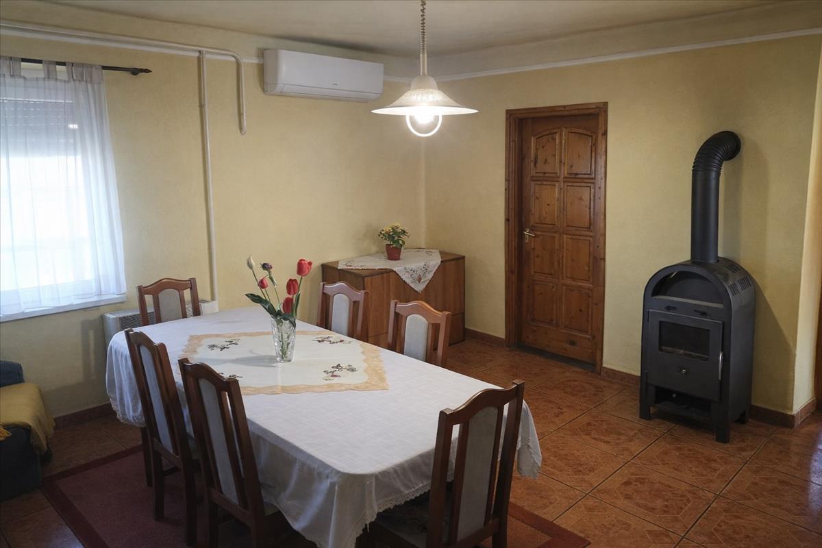 A konyhából belépve a tágas nappali-étkezőbe, onnan 3 önálló szoba és egy fürdőszoba (vécével egyben) nyílik. a fűtés gázkonvektorral illetve hűtő-fűtő klímával is üzemeltethető, továbbá egy kis fatüzelésű kandalló is helyet kapott a nappaliban. a melegvíz ellátást gázbojler biztosítja. FIX 3% lakáshitelre megvehető