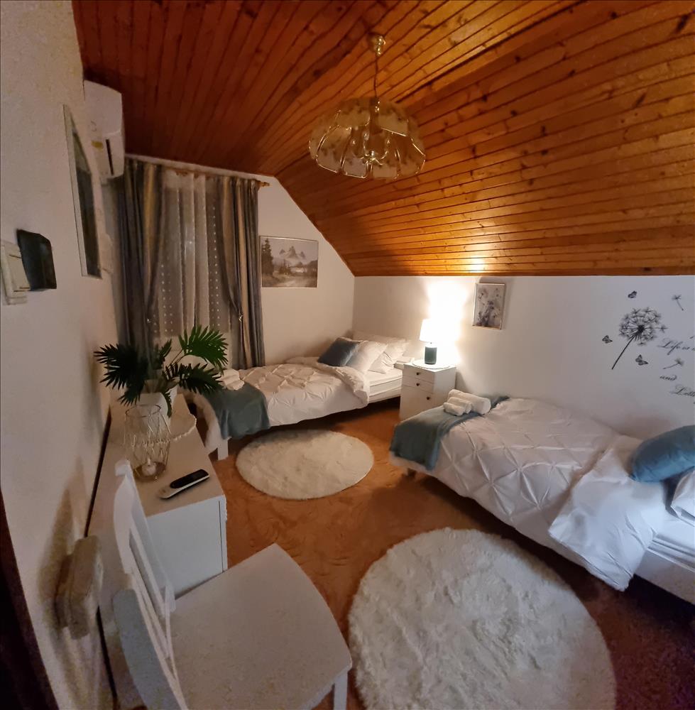 Emelet: 3 szoba + előtér + Nagy méretű fürdőszoba + beépített gardrób helyiséggel.