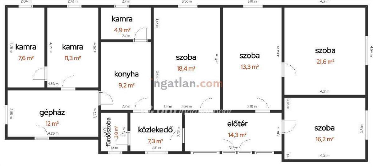 Telek mérete: 683 m2, 4 szoba + előtér, közlekedő, konyha, 3 kamra, gépház, fürdőszoba