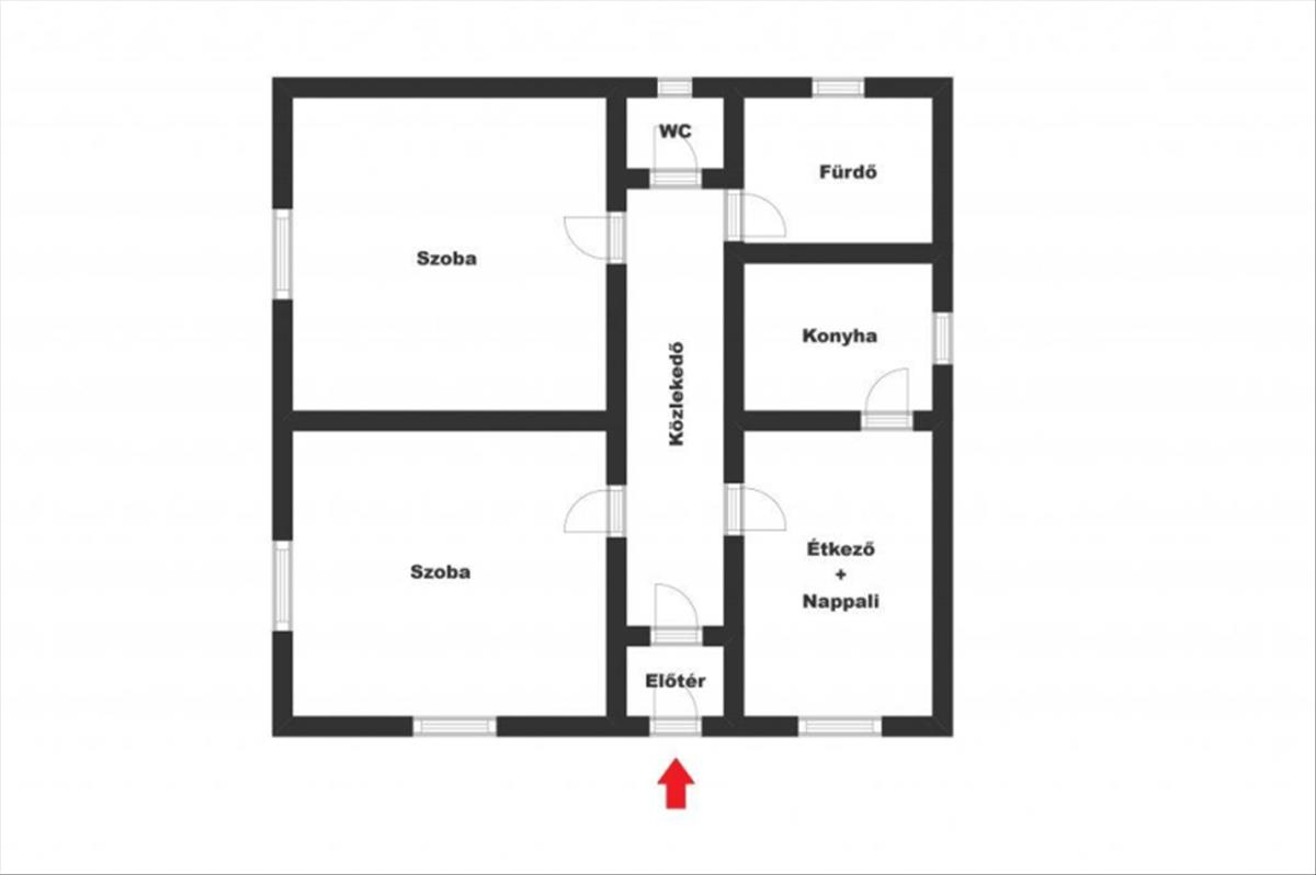 -elrendezése: 2 szoba, nappali + étkező, konyha, fürdő, wc, előtér, közlekedő