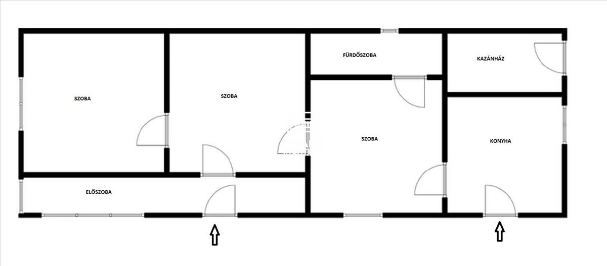 A ház elosztása praktikus: három szoba, konyha, fürdőszoba és előszoba található benne. a fűtésről jelenleg cirkó rendszer gondoskodik, de vegyes tüzelésű kazán is rendelkezésre áll, a meleg vizet villanybojler biztosítja, a fürdőszoba kádas kialakítású.