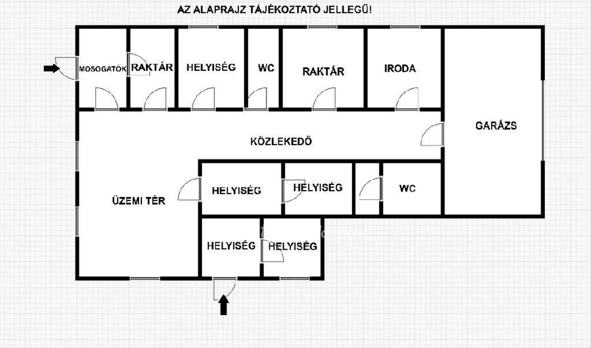 Az üzletben többek között egy üzemi rész, közlekedő, előtér, 2 wc, öltözők, mosogatók, raktárak találhatók.