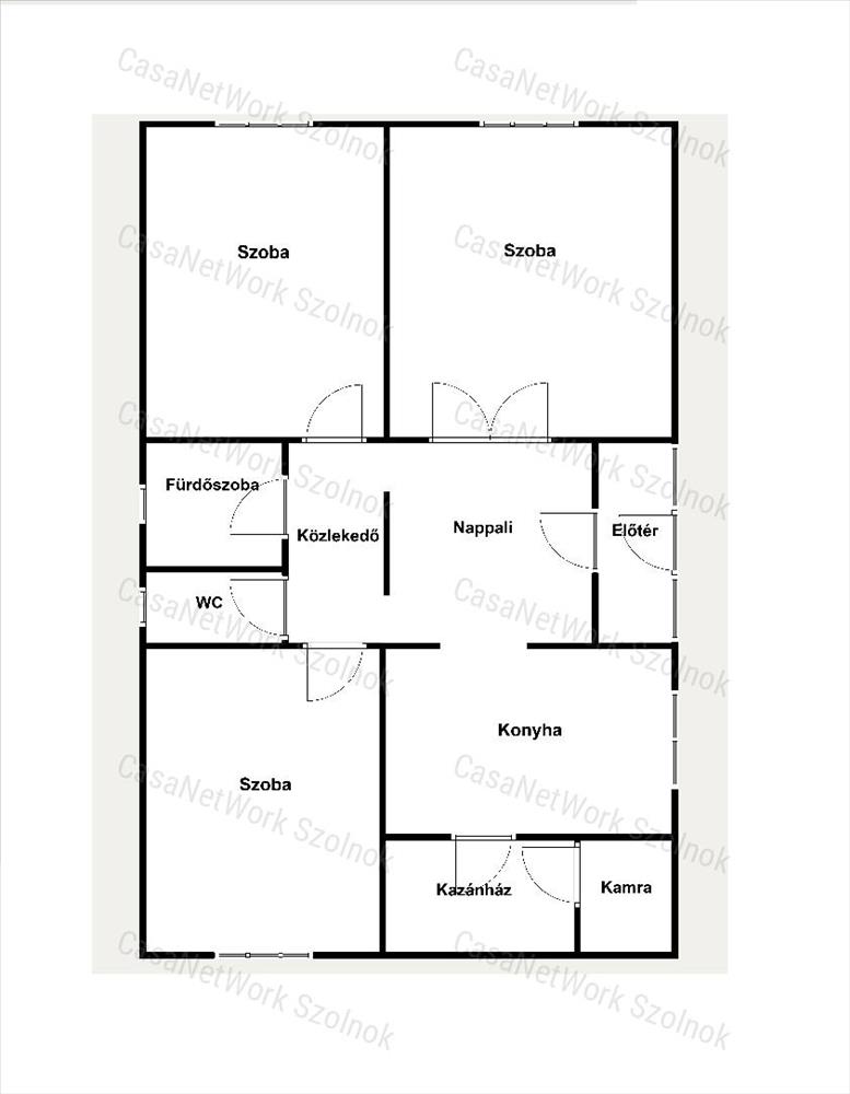 - rendelkezésre álló helyiségek: előtér, nappali, konyha, kamra, kazánház, 3 külön nyíló szoba, közlekedő, kádas fürdőszoba, illemhely