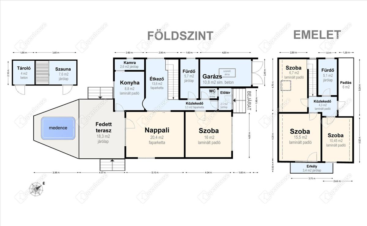 - az ingatlan igazi különlegessége a privát wellness élmény: fűthető, ellenáramoltatós medence (6 m3) és szauna biztosítja a mindennapi feltöltődést