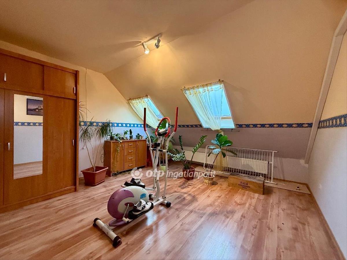 Az emelet szintén jól átgondolt, élhető tereket kínál. Itt négy szobát alakítottak ki, melyek közül kettő teljes értékű, kényelmes méretű hálóként funkcionál, míg két kisebb szoba kiváló lehetőség dolgozószoba, gyerekszoba vagy hobbitér kialakítására. a terek laminált parkettával burkoltak, a szobák tájolása miatt pedig kellemesen világosak. a szinten található egy különálló gardróbhelyiség, amely nagyban hozzájárul a rendezettséghez. a fürdőszoba és a külön wc praktikus elhelyezése biztosítja a család zavartalan reggeli készülődését.