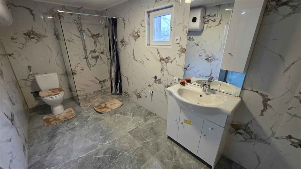 Az épület idén került felújításra - még most is zajlik a befejezése. Kialakításra került egy szép, nagy fedett terasz. Innen nyílik a bejárat a házba, mely a konyha/étkezőbe vezet. Balra találjuk a fürdő/mosdó helyiséget, ahol zuhanyzó kerül kialakításra, mosdóval. a mosdó csapteleppel és kis mosdó alatti szekrénykével kerül átadásra. a konyhában és a fürdőszobában hideg burkolat kerül - 60x60-as járólapokkal (alatta lépésálló szigeteléssel, 4-es betonhálóval és 10 cm-es padloponnal) - a falra pedig csempe került. a konyhában a konyhabútor is része az ajánlatnak a mosogatóval - gépek nélkül. a szobába laminált parketta burkolat került, mely alatt természetesen padlópon és szivacs szigetelés található. Az épületben a teljes villanyhálózat, vízvezetékhálózat kicsererélésre került - 32 amperes villanyóra van igénylés alatt. Az otthon melegét 1 db inverteres klíma és fali elektromos panel fogja adni. a falak belső és külső festése folyamatban (fehér falak - lábazat szürke), valamint a ház külső szigetelése 15 cm-es nikecellel történik. a nyílászárók is kicserélésre kerültek - új ablakok + új párkányok, bejárati ajtó és a belső ajtók is kicserélésre fognak kerülni. a födémen 10 cm-es közetgyapot szigeletés várható. a padlásfeljáró a fürdőszobából közelíthető meg.