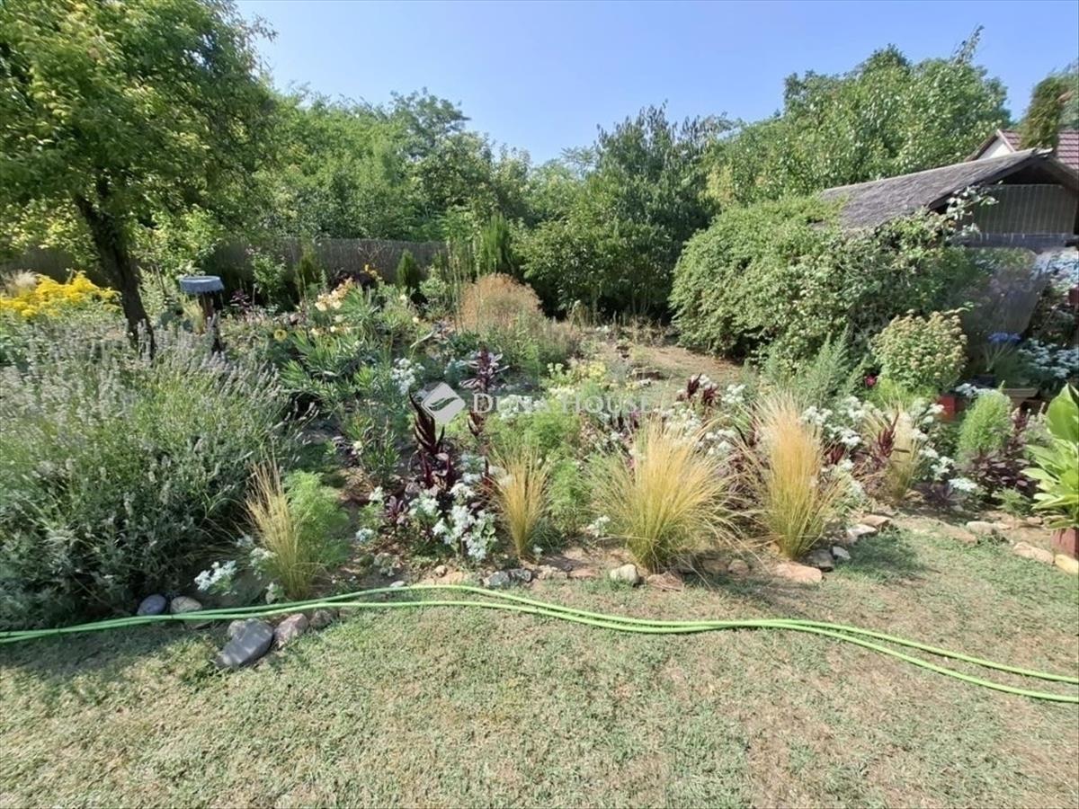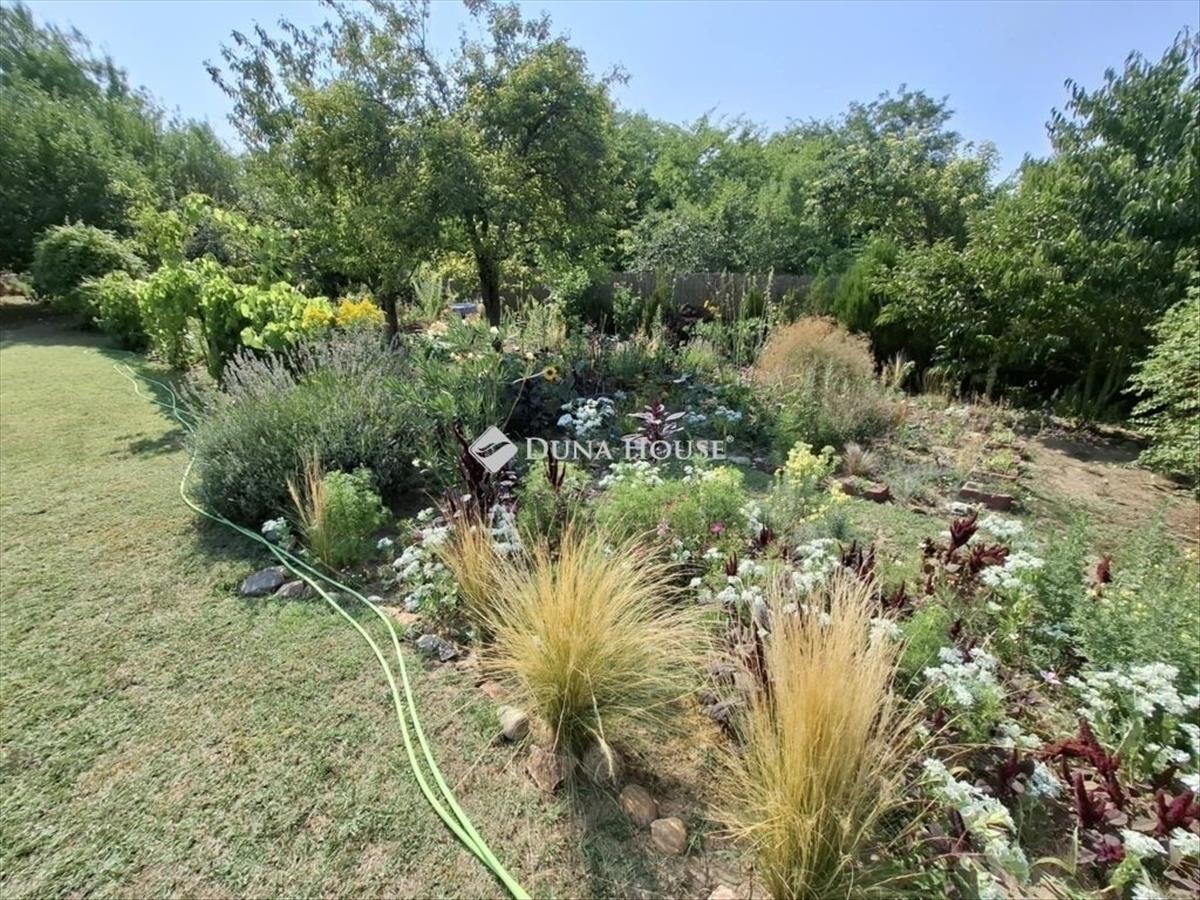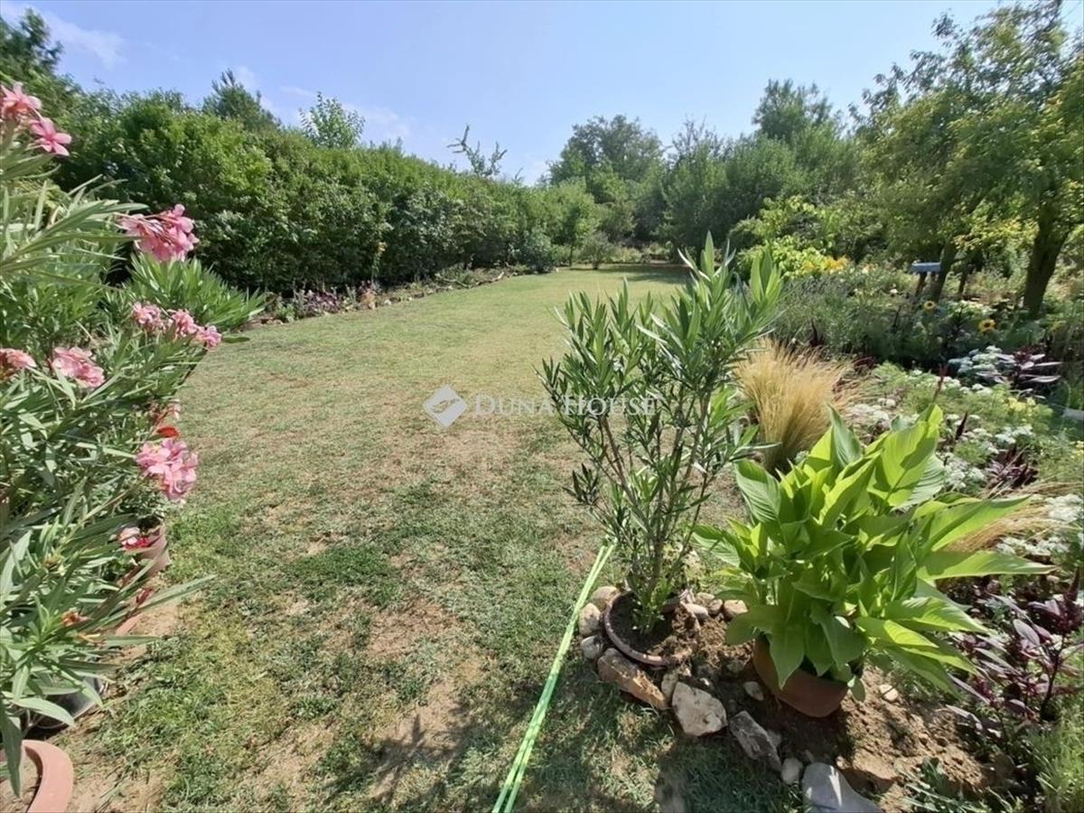 Kertje körbe kerített, több gyümölcsfával és rengeteg virágzó növénnyel - de füves részt is találunk. Hátul pedig a kerti szerzszámoknak egy fa tárolót! a telken fúrt kút is megtalálható - de kerti csapot is találunk (3 db).