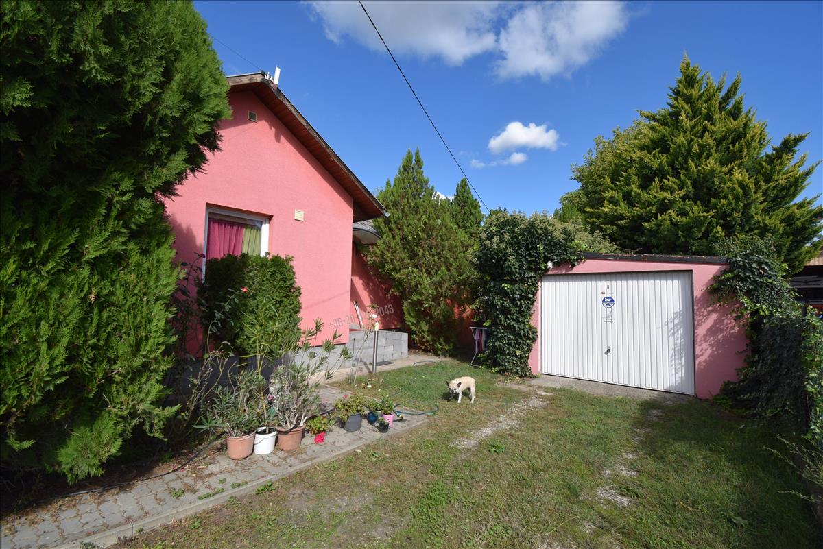 A kertben lévő, jó termésű gyümölcsfák, tuják, rózsabokrok kellemesen árnyékolják, díszítik a telket, mely távolról is vezérelhető öntözőrendszerrel öntözhető. a ház előtti garázsban 1 autó kényelmesen parkolhat, valamint polcoknak is jut hely, míg a garázs előtt további 2 autó is parkolhat. a kapu elektromosan mozgatható, ahogy a garázskapu is.