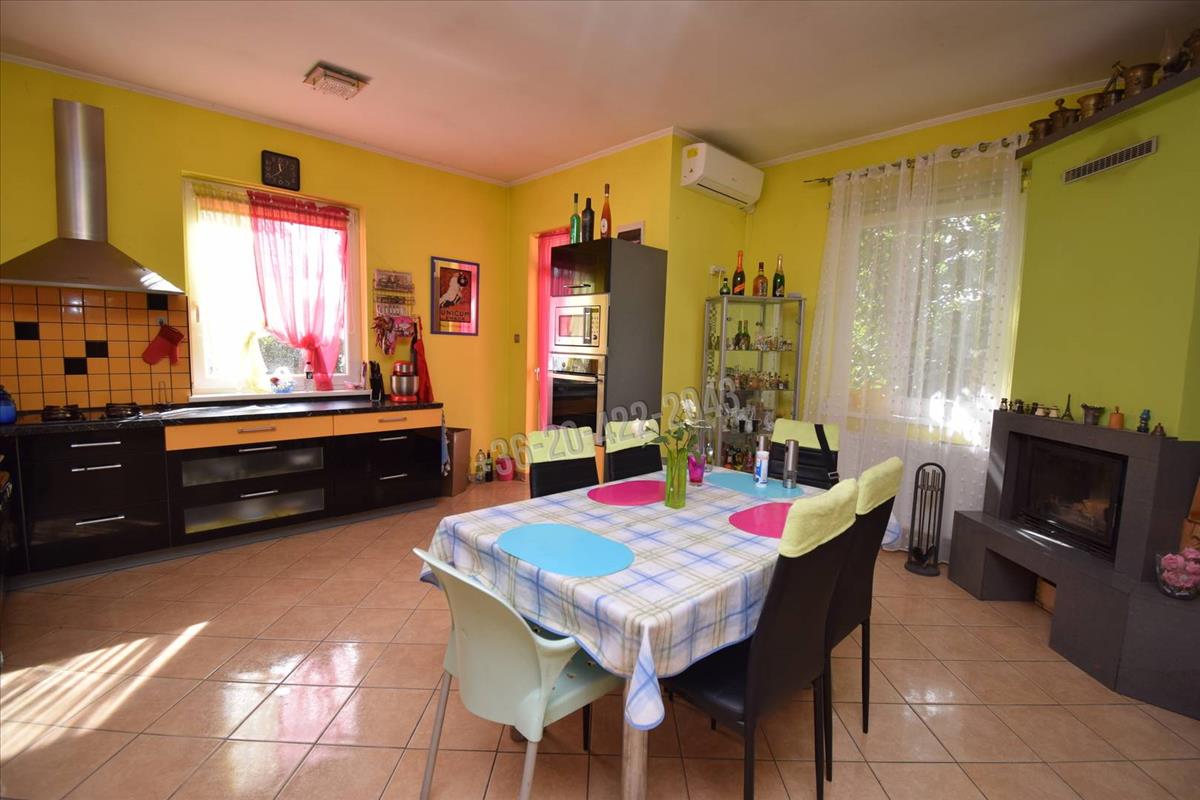 A minőségi konyhabútor a gépekkel a vételár részét képezik (Fagor gázfőzőlap + sütő, lg beépített mikró, Ariston mosogatógép). a nappaliban – amely teraszkapcsolatos - egy kandalló is található, amely képes kifűteni a házat, a téli estéken kifejezetten hangulatos tud lenni. a fürdőszoba és a wc külön helyiségben vannak.