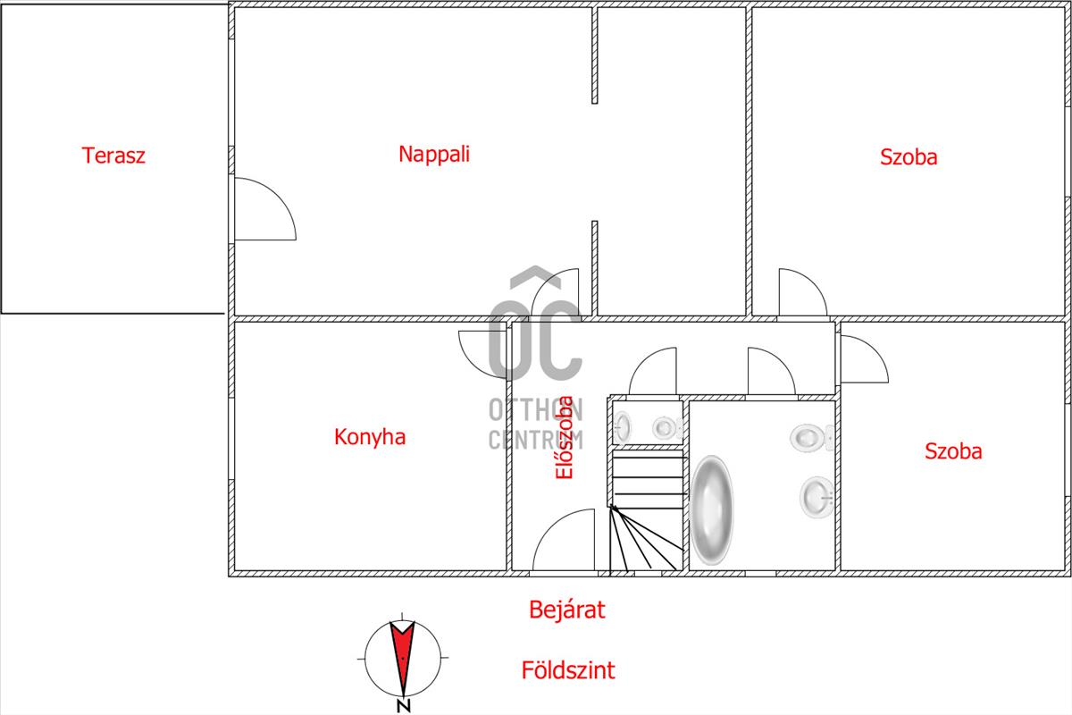 - Tájolás:K