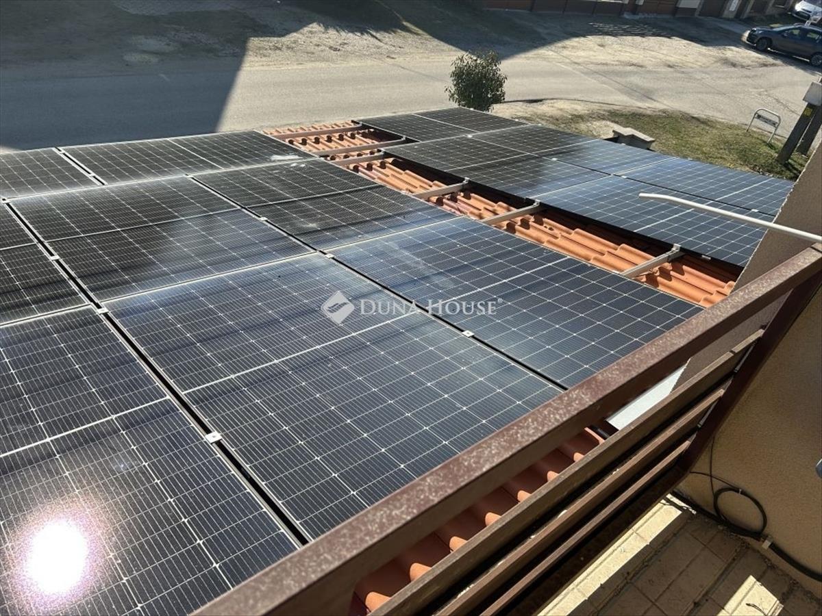 Tolna Újtelep részén, kedvelt utcában eladásra kínálok egy 147 m-es kétszintes családi házat 728 m2-es sarok telekkel. a tégla falazatú, cserép fedésű lakóházban nappali, 3 szoba, gardrób, konyha+étkező, fürdőszoba, 2 wc háztartási helyiség valamint egy Hörmann ajtóval ellátott garázs kapott helyet. a földszinten és az emeleten is két fedett terasz, található. a nappaliból nyíló terasz burkolattal illetve ponyvával lett ellátva, így télikertként is használható. a teljes víz-, szennyvíz-, villany-, gázhálózat felújításra került. Áramellátás 3 fázis, 3x32 a. a vízvezetéken vízlágyító berendezés beépítése történt. a házon 17 kW-os napelemrendszer került elhelyezésre, mely 2032-ig saldo-s elszámolású. a rendszer kiépítésével az áram + fűtés + elektromos autó töltés költsége díjmentesre kalkulálható. a gázkazánnal kialakított központi fűtés mellett 6 darab klíma is felszerelésre került. a nappalban, az egyik emeleti szobában és a fürdőszobában padlófűtés található. a teljes lakóházban a burkolatok cserélve lettek. Az ingatlan kívülről 10 cm, a födém pedig 40 cm-es szigetelést kapott. a kert parkosított, öntözőrendszerrel van ellátva, fúrt kút is rendelkezésre áll. Új kerítés mindkét utcai oldalon, valamint a kocsibeálló és a járdaszakasz is térköves. a z udvaron helyet kapott egy 30 m2-es garázs, kettő 15 m2-es tároló és egy 45 m2-es kerthelyiség. a garázsban elektromos autótöltő lett beépítve. Mindkét garázsbejárónál elektromos úszókapuval található. Amennyiben felkeltettem érdeklődését, hívjon bizalommal! FIX 3% lakáshitelre megvehető