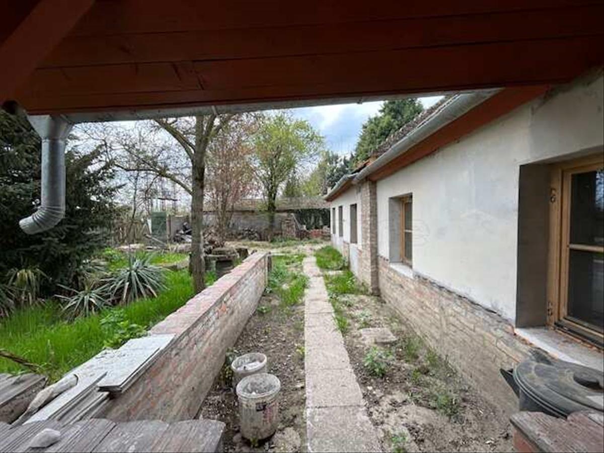 A ház 102 m2, udvaron fák, bokrok találhatóak. Autóval az udvaron lehet parkolni, de egy fedett beállót is van hely kialakítani.