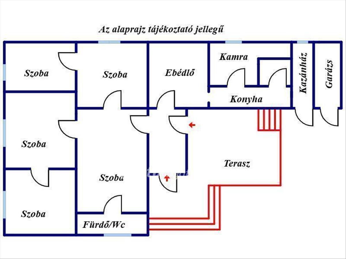 A csendes, kis forgalmú utcában fekvő vegyes falazatú ingatlanban előszoba, 4 szoba, nappali, konyha, étkező, fürdő, valamint tároló helyiségek találhatóak. a szobák hajópadlóval, a többi helyiség járólappal lettek burkolva. Az otthon melegét gáz cirkó kazán biztosítja radiátoros hőleadással, a melegvizet is ez szolgáltatja. a gázkazán mellett egy nagy teljesítményű vegyes tüzelésű kazán is helyet kapott. a fő épület folytatásában udvari garázs és tároló helyiségek, gazdasági épületek lettek kialakítva. a kerítéssel leválasztott udvar tágas teret biztosít családi összejövetelek megtartásához, a fúrott kúttal rendelkező nagy telek pedig konyhakert, vagy akár mezőgazdasági vállalkozás kialakítására is alkalmas