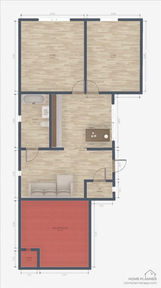 A meglévő lakótér gyakorlatilag egy tisztasági festés után azonnal költözhető.