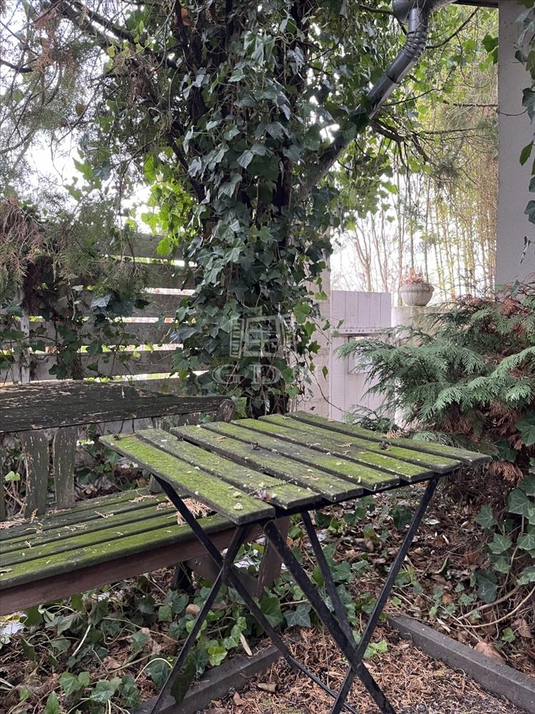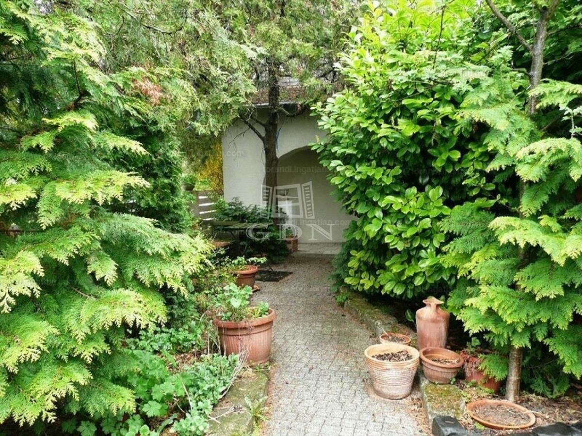 Az 800 m²-es telek parkosított, a térkövezett udvar elektromos kapun keresztül közelíthető meg, a kertben ősfák és örökzöldek teremtenek intim, elszeparált környezetet. a 40 m²-es garázs mellett egy 30 m²-es tároló, valamint egy külön, 4 m²-es fürdő is kialakításra került, a garázs feletti teraszos rész pedig további, hosszú távon is értéket növelő lehetőségeket rejt.