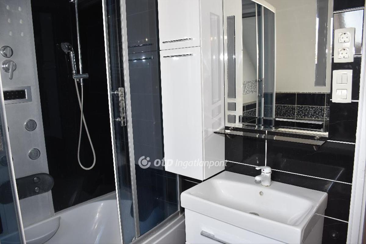 A felső szinten egy igényesen kialakított lakás található, amelyben 3 szoba, 2 félszoba, konyha és fürdőszoba kapott helyet. a szobák laminált parkettásak, a konyha, nappali és fürdő-WC járólappal, illetve csempével burkoltak. a fanyílászárókat hat éve cserélték, redőnnyel ellátottak, és három darab hűtő-fűtő klíma is rendelkezésre áll. a fűtésről gázkazán gondoskodik radiátoros hőleadással, de vegyes tüzelésre is van lehetőség. Az üzlethelyiségek és az iroda elektromos infrapanellel fűthetők. a rendszer kényelmét 500 literes puffertartály és két villanybojler egészíti ki.