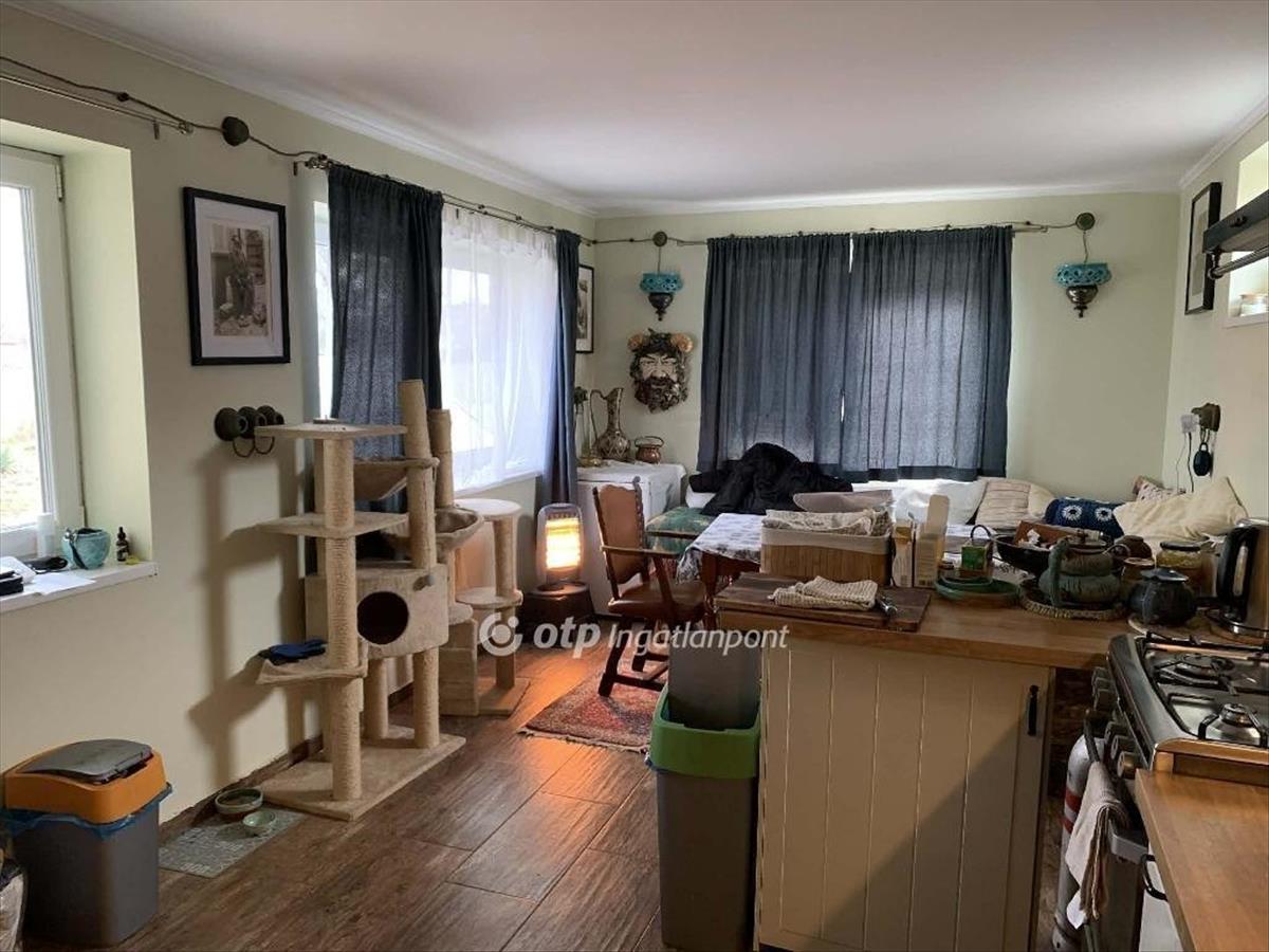A belső terek praktikus elrendezésűek. a világos, tágas konyhát egyedi kerámia falburkolat teszi karakteressé. a fürdőszobában zuhanykabin, kézzel készített, egyedi kerámia falburkolat és mosdókagyló található; a kényelmet padlófűtés növeli. a fűtésről központi elhelyezkedésű cserépkályha gondoskodik, a hálószobában hűtő-fűtő klíma biztosítja a hőkomfortot. a gázvezeték az utcában elérhető, jelenleg a gáztűzhely palackos gázzal üzemel.