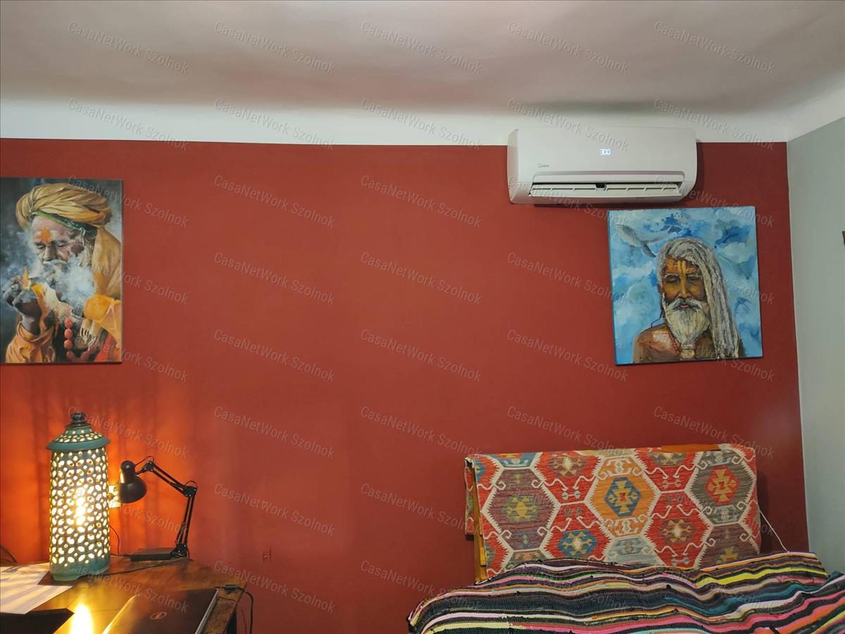 a fűtés cserépkályhával megoldott, mely központi helyen helyezkedik el; a hálószobában kiegészítésként hűtő-fűtő klíma került beszerelésre,