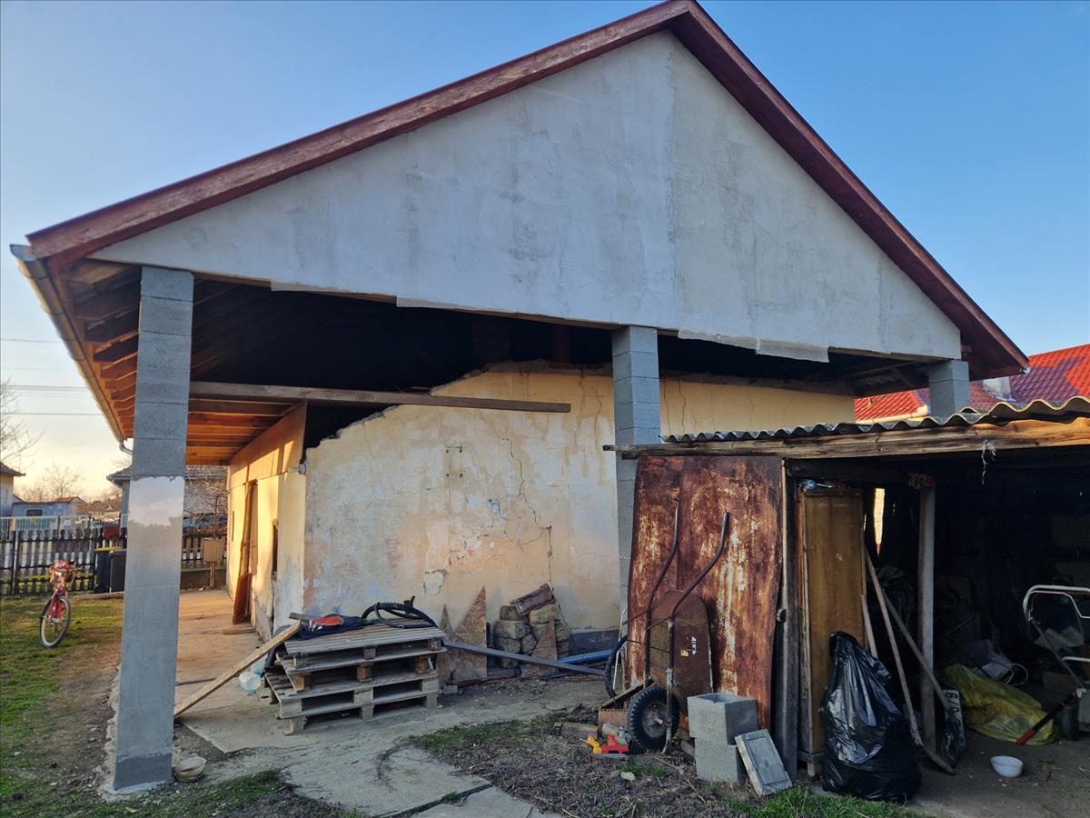 Az ingatlan egy 875 m²-es telken helyezkedik el, a ház alapterülete 55 m². a jelenlegi elrendezésben 2 szoba, konyha, fürdőszoba és előszoba található, amely igény szerint tovább alakítható. a ház vályog falazattal és tégla alapozással épült az 1960-as években, melynek korszerűsítése elkezdődött. Az épületen új tetőszerkezet készült, a tető méretét megnövelték, így lehetőség nyílik plusz hasznos alapterület kialakítására. Az ingatlanban minden közüzemi szolgáltatás rendelkezésre áll (víz, villany, gáz, csatorna). a telken találunk a lakóház mellett egy kb. 20m2-es lemezgarázst. a telek méretéből adódóan további beépítés is lehetséges, így kialakíthat akár nyári konyhát, műhelyt, szilárd falazatú garázst… FIX 3% lakáshitelre megvehető