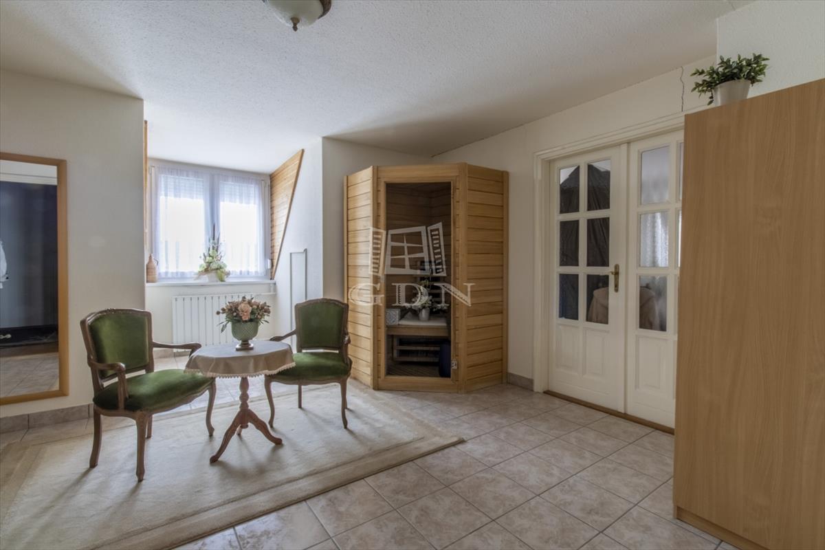 Az épületet gáz és vegyes kazán, 1 db klíma, 5 szoba, amerikai konyha - nappali, 2 füdőszoba, 100 nm-es pince, valamint az emeleten kb. 30 Négyzetméternyi rejtett tároló jellemzi, a biztonságért kamera és riasztó rendszer felelős.