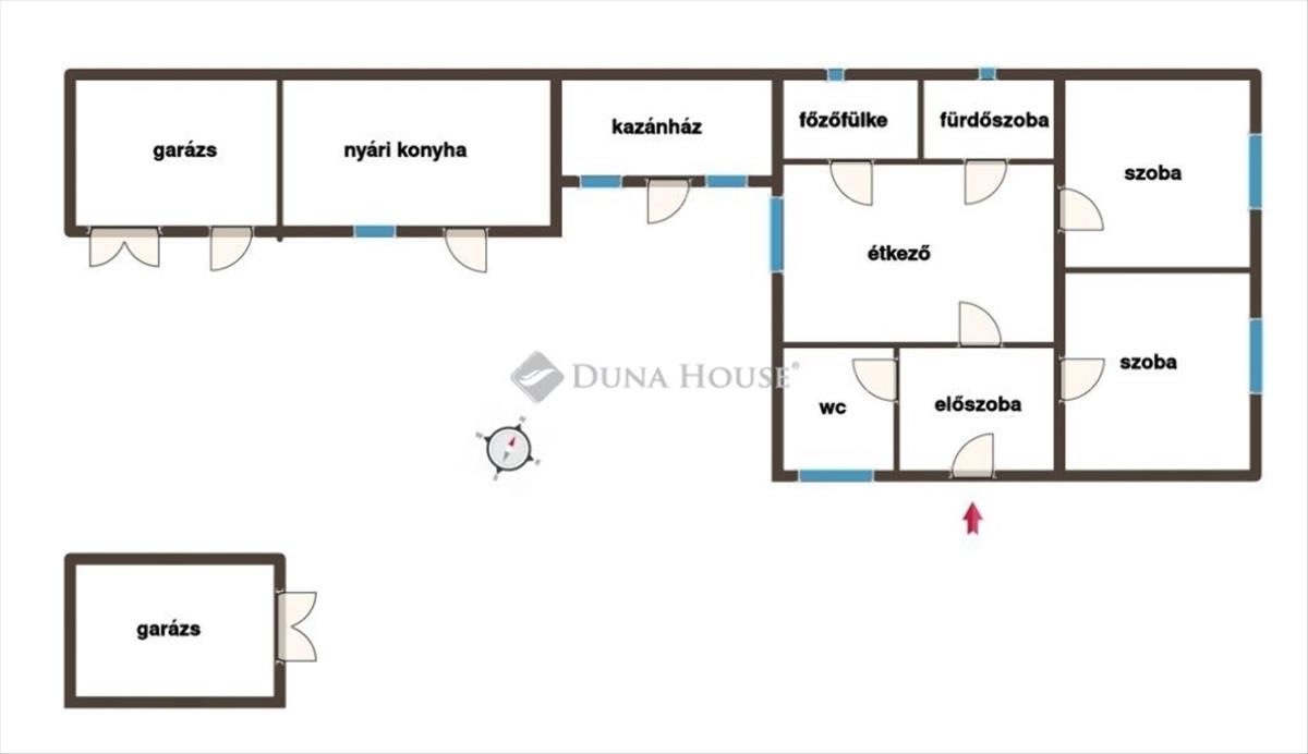 -lakótér: 2 szoba, étkező, főzőfülke, fürdőszoba, külön helységben toalett, előszoba