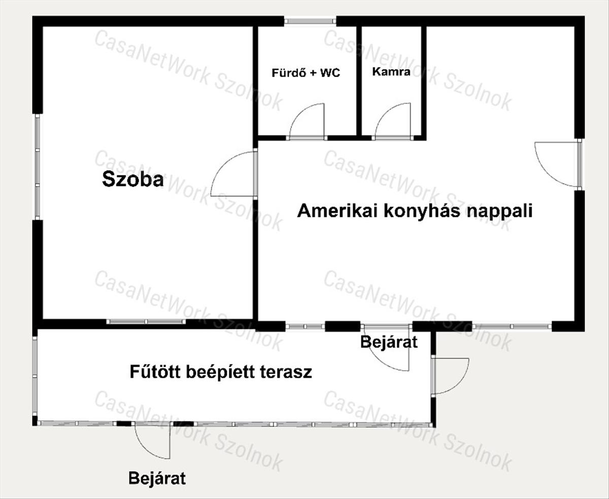 - rendelkezésre álló helyiségek: amerikai konyhás nappali, egy tágas, világos szoba, fürdőszoba WC-vel, valamint egy külön kamra