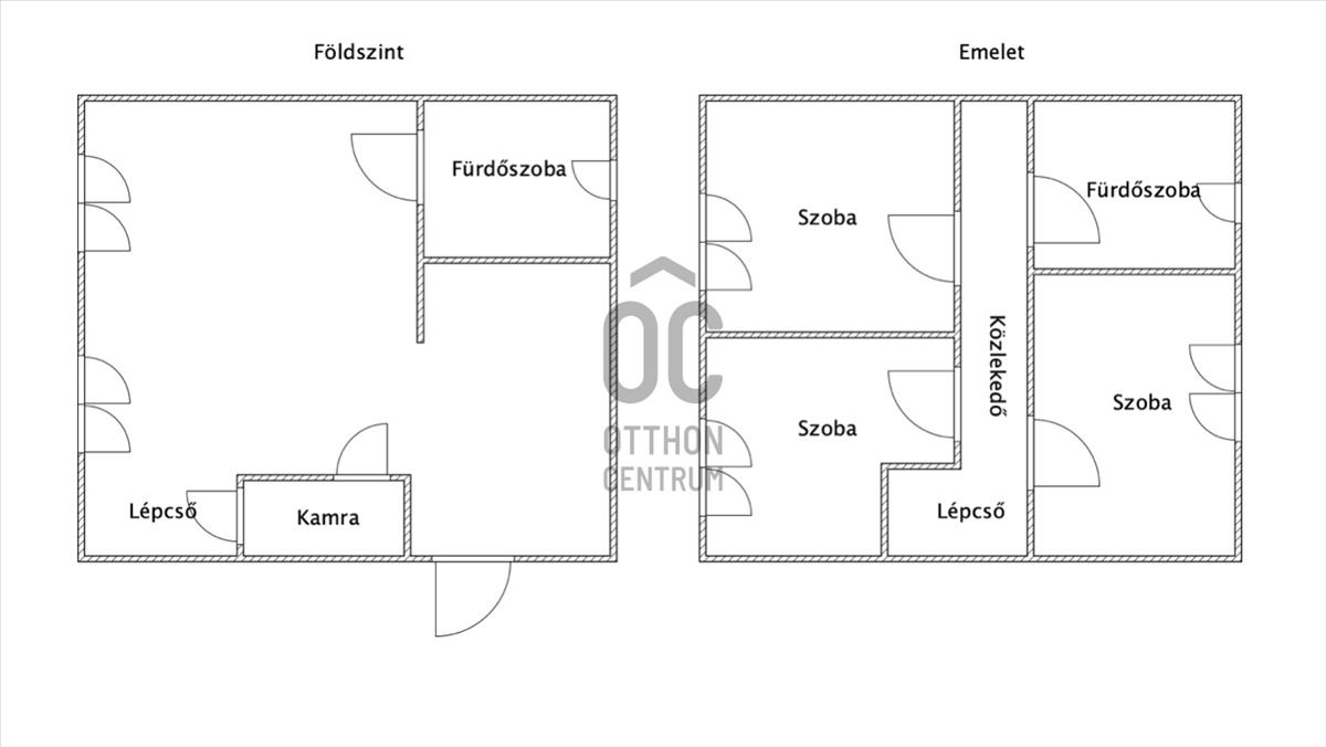 - emeleten: közlekedő, 1+2 félszoba, fürdőszoba wc-vel