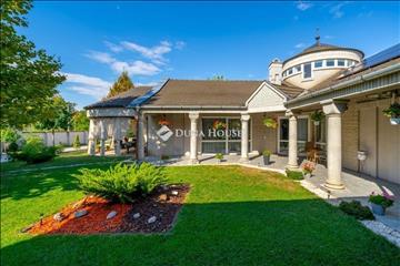 Tisztelt Érdeklődő! Engedje meg, hogy figyelmébe ajánljak egy igazán különleges ingatlant, amely egyszerre ötvözi a modern kényelmet és a klasszikus eleganciát. a közel 270 m²-es lakótér egy szinten helyezkedik el, tágas és jól átgondolt alaprajzzal. a központi étkezőterem impozáns oszlopsorral övezve különleges atmoszférát teremt, ideális családi összejövetelekhez és vendégek fogadásához. a nappali világos és tágas, a hálószobák kényelmes méretűek, a fürdőszobában jakuzzis fürdőkád található, emellett infraszauna és praktikus háztartási helyiség is szolgálja a mindennapokat. Az ingatlan közel 2 100 m²-es telken helyezkedik el, ahol fedett teraszok, napozóterasz és parkosított kert biztosítanak nyugodt pihenést. a medence elhelyezésére az előkészítés megtörtént. a ház korszerű gépészeti megoldásokkal felszerelt: napelemek, hőszivattyús fűtés, klíma és elektromos autó töltő gondoskodnak a fenntartható és gazdaságos működésről. Az épület energetikai besorolása a+, amely hosszú távon is előnyös választássá teszi. További értékek:- Különleges építészeti kialakítás oszlopsorral- Jakuzzis kád- 6 személyes kültéri infraszauna- kültéri jakuzzi- Kerti tároló- 2 nagy teljesítményű robotfűnyíró- Napelem és hőszivattyú (10 kW-os tárolóval, H-tarifával) Energiatakarékos gázcirkó- Elektromos autó töltő- Biztonsági rendszer: kamera, riasztó, biztonsági ajtóEz az ingatlan valóban különleges, tökéletes választás mindazok számára, akik tágas tereket, biztonságot és modern megoldásokat keresnek. Amennyiben felkeltette érdeklődését, szívesen állok rendelkezésére egy személyes bemutatás során. Üdvözlettel:Széll EmesePrémium Ügyfelek Privát IngatlanosaÉrdeklődni: Szabó Róbert, mobil: +36-20-52-000-80