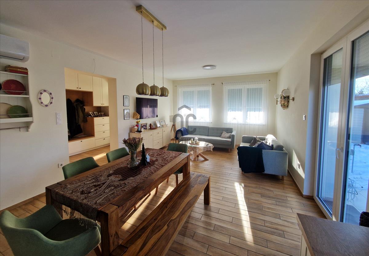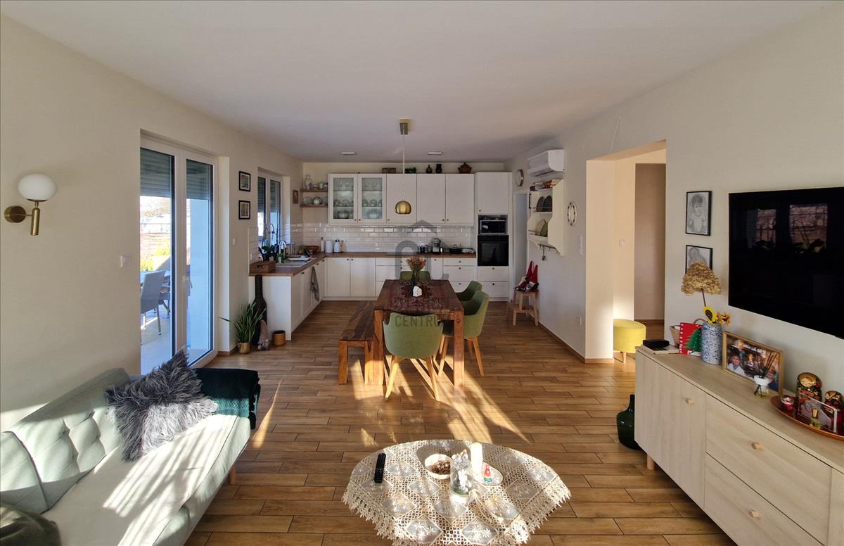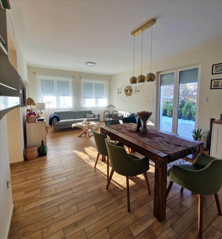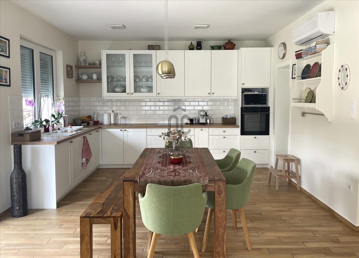 Eladó Üllőn, újszerű állapotban egy kitűnő beosztású, kiváló minőségben épült, földszintes, 112, 3 (nettó) nm-es 5 szobás családi ház, mely lakóterületén túl 3, 4 nm-es fedett belépővel és 18 nm-es terasszal is rendelkezik. a ház 2022-ben épült, 601 nm-es telekkel rendelkezik, ami egy kizárólagos használati megosztással rendezett telek belső fele. Tágas és teraszkapcsolatos nappali-konyha-étkezőn túl, 4 szobával, háztartási helyiséggel, két fürdővel, tágas előszobával és kamrával is rendelkezik. Fűtését gáz-cirkó biztosítja, a főfalak 15, a faszerkezetű födém 30 cm szigeteléssel rendelkezik, (redőnnyel, és kívűlről mészkő párkánnyal ellátott) műanyag nyílászárói három rétegűek. a világos, praktikus elrendezésű házból, a jó ízléssel válogatott és magas minőségben beépített burkolatok és szaniterek, valamint a koherensen kivitelezett beépített bútorok teremtenek otthont. Ezen felül az ingatlan élhetőségét, kényelmét biztosítja számtalan kiegészítő és műszaki megoldás, mint például az elektromos kapu, a parkosított kertben telepített fúrt kútról üzemeltetett öntözőrendszer, a vakondhálóval ellátott gyepszőnyeg, az udvari tároló kisház, a kialakított gépkocsibeálló, a szobákban elhelyezett 5 db, H-tarifás mérőről üzemeltetett klíma, a riasztórendszer teljes vezetékezésének előre kiépítése, az ízléses konyha gépesítése, a padlástérben kialakított kb. 4 Nm-es pakolható terület. Elhelyezkedésének köszönhetően közlekedése kitűnő, vasútállomás sétatávolságra, gyorsforgalmi út pár perc alatt elérhető. a lakókörnyezet barátságos, a közelben óvoda, bölcsöde és játszótér is megtalálható. a birtokba adás tervezett ideje 2026 július közepe.